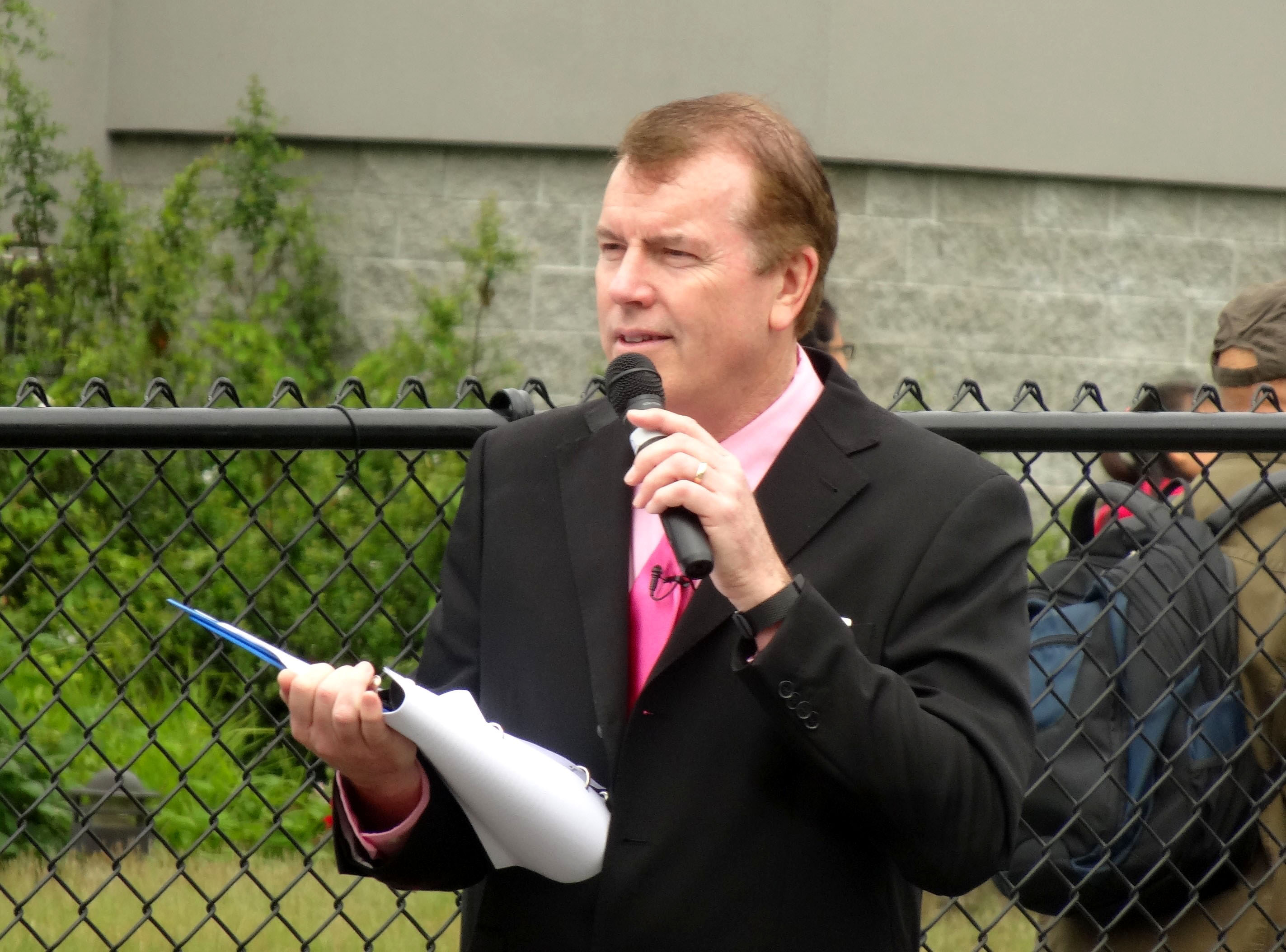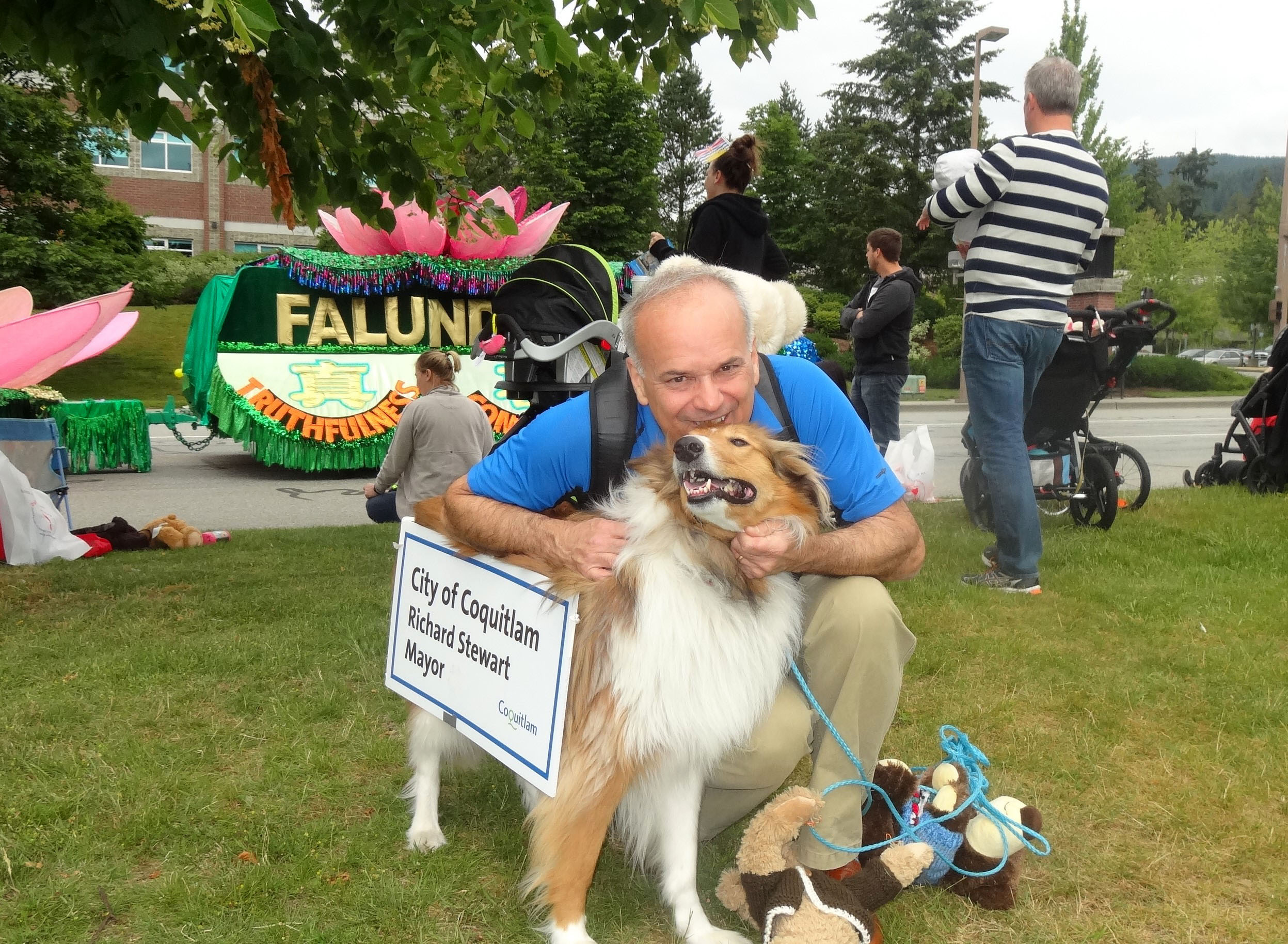 高贵林市市长Richard Stewart先生多年来一直支持温哥华法轮功学员的反迫害活动,并在二零一四年泰迪熊节游行加入法轮功学员的腰鼓队与法轮功学员一起打腰鼓直到游行结束。Richard Stewart先生对记者表示,他个人很喜欢打鼓,他也是个鼓手,他的办公室里收藏了很多国家的鼓,所以他在法轮功学员游行队伍中看到充满活力的腰鼓队,他很开心很喜欢,所以前年高兴地加入法轮功学员腰鼓队一起打鼓。