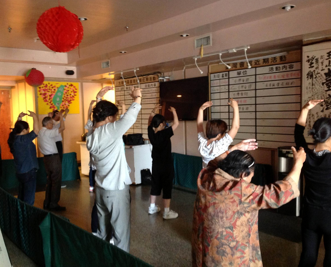 九天班的负责人TINA(周女士)介绍了自己在台湾得法的经历,她说自己的小叔就是参加九天班得法的,刚学功时告诉她这个功法“不用钱,可以让你身体好。”周女士一听马上觉得很好,赶快要来传单看,然后就主动打电话联系参加九天班。周女士每天开车一个多小时往返炼功点炼功,觉得太浪费时间,三个月后,周女士和先生在自己的社区成立了一个新的炼功点。