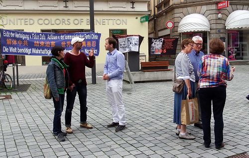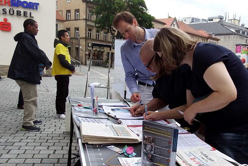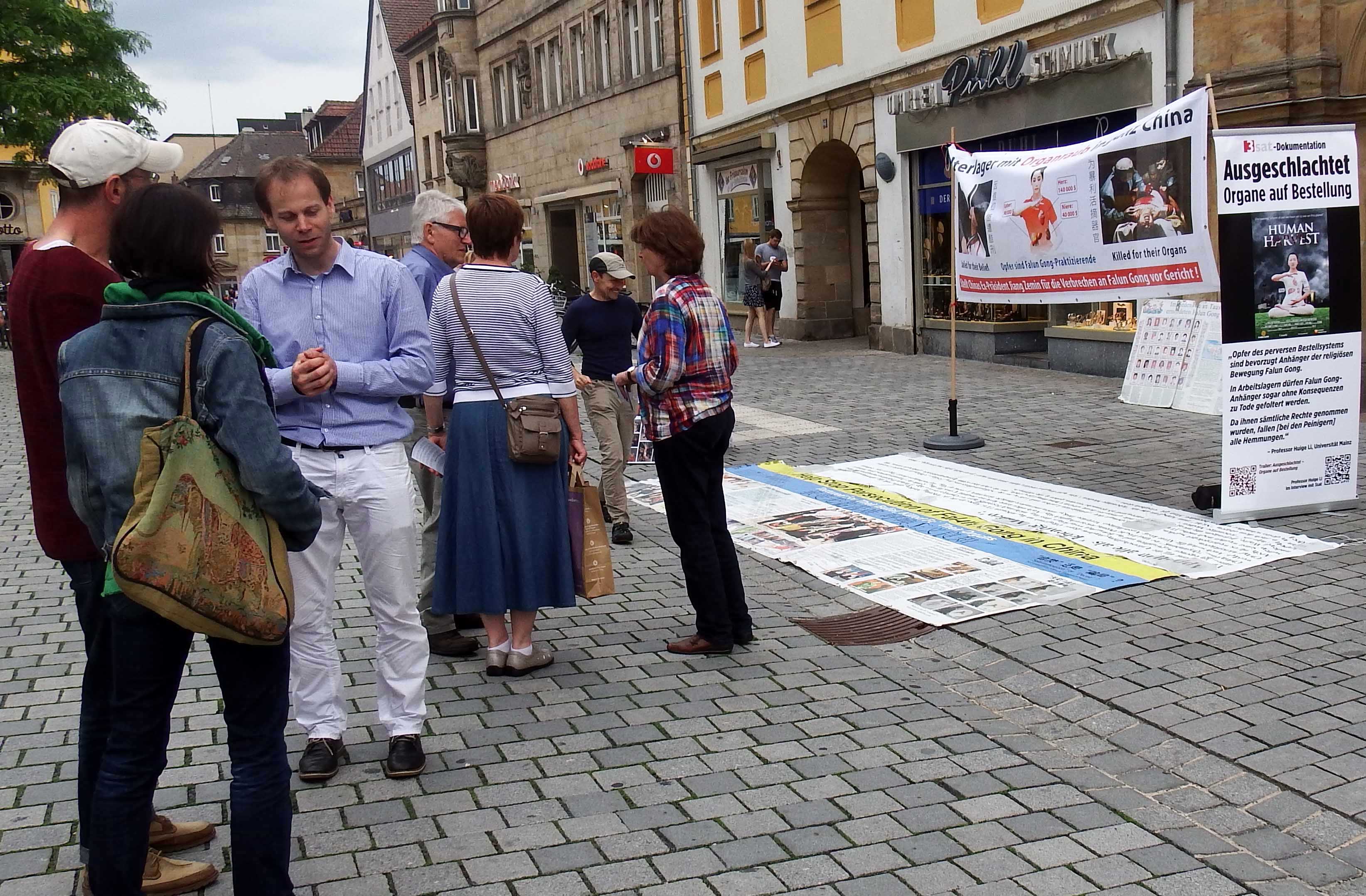 拜罗伊特是全球闻名的瓦格纳歌剧节所在地,即便不在歌剧节期间,每天都有很多来自世界各地的游客慕名而至。另外今年从五月中旬至十月拜罗伊特市举办德国的花园博览会,也吸引着大量德国主流社会的光临。法轮功学员经常在周六举办揭露中共迫害的活动也吸引了这些主流社会人士的注意。