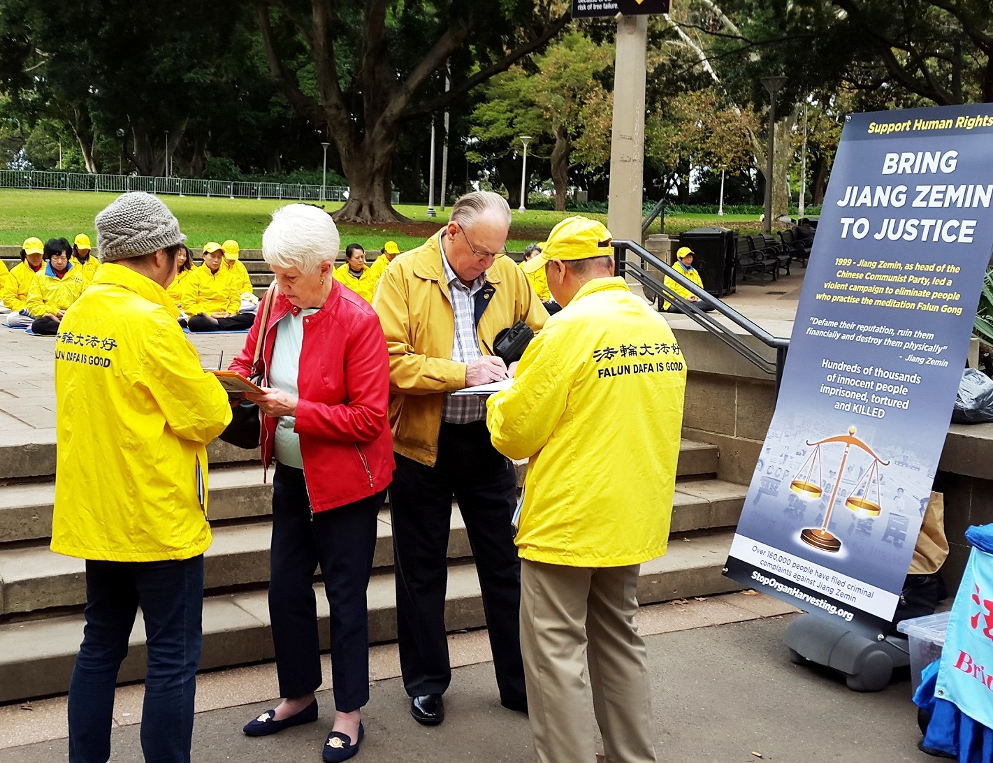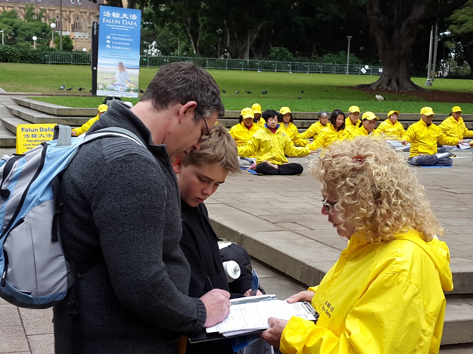 二零一六年六月十七日,从悉尼南海岸来悉尼的生意人格伦•唐金(Glen Donkin )先生路过时,主动签名支持法轮功反迫害。他感叹:几年前我就知道这事(法轮功学员被中共迫害及活摘器官)。因为我们从新闻、网络和社交中都听闻了,这事非常糟糕,它是极其恐怖的犯罪行径。我和我的朋友们都经常谈论这事,并常常会发问:为何政府可以允许这么可怕的事持续发生着?