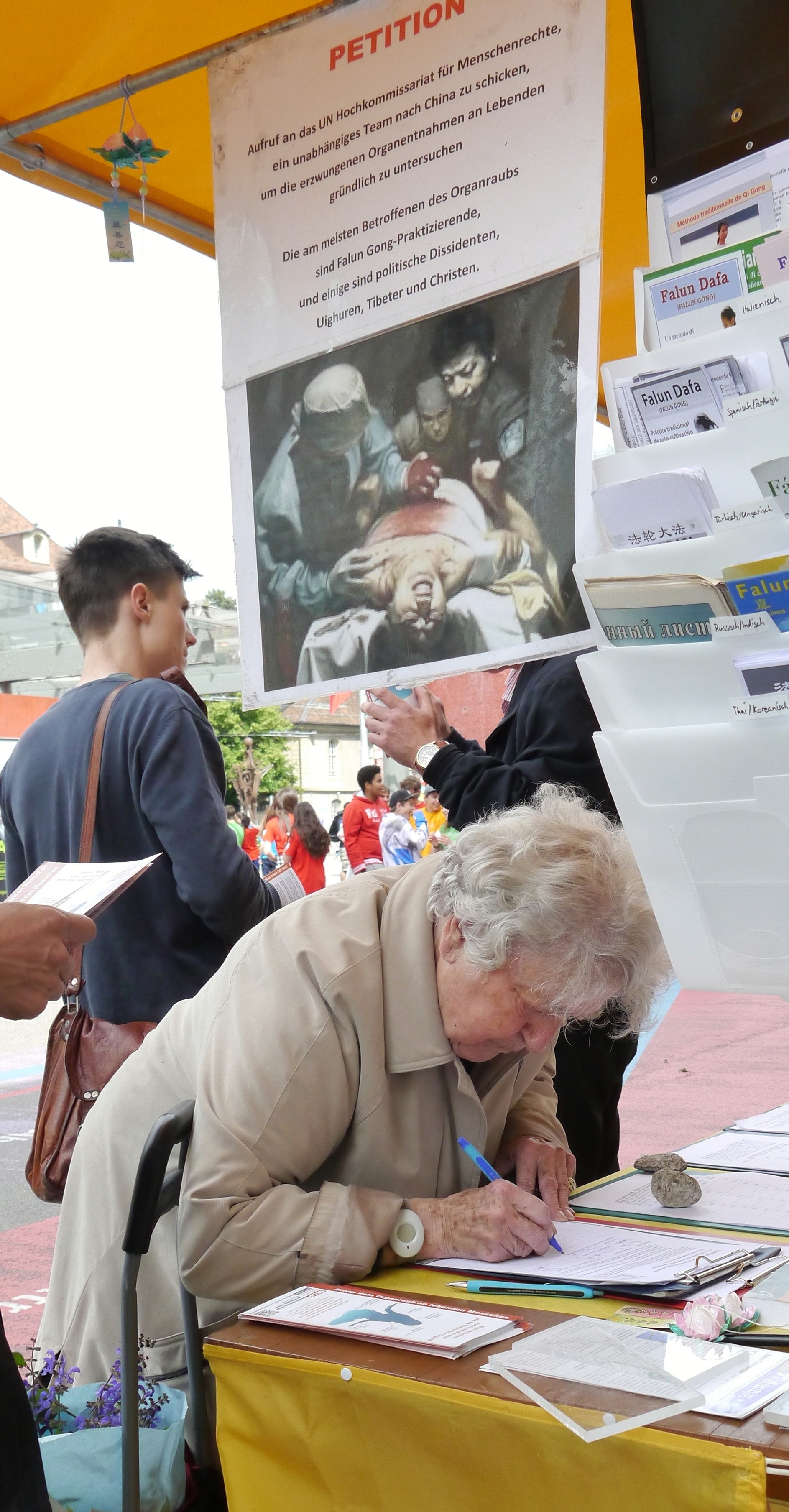 年轻小伙丹尼尔(Daniel)是住在伯尔尼的社会工作者。对于中共活摘器官,他说:“这实在让我感到太悲伤了,这根本不应该存在。这让我想起了当年纳粹对犹太人的屠杀。为了利益窃取别人的器官,这是犯罪,这绝对是犯罪!”他希望通过签名能够引起社会上更多的关注,他说:“让我们一起来重视这个问题。”他认为:“法轮功学员不应该受到迫害。”
