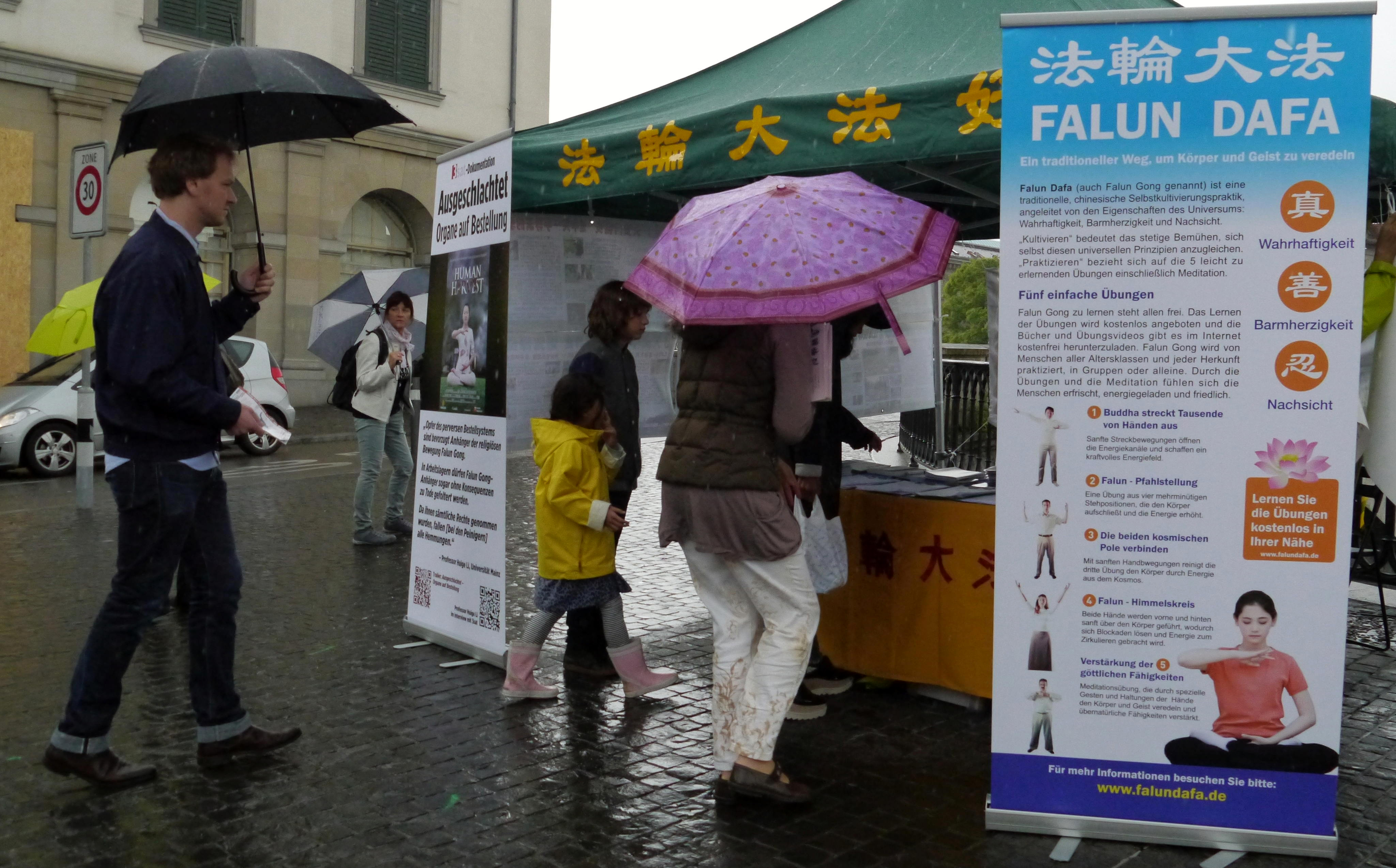 ![]() 图1-3:路人在伯尔尼火车站广场了解法轮功真相并签名制止中共活摘器官。 |