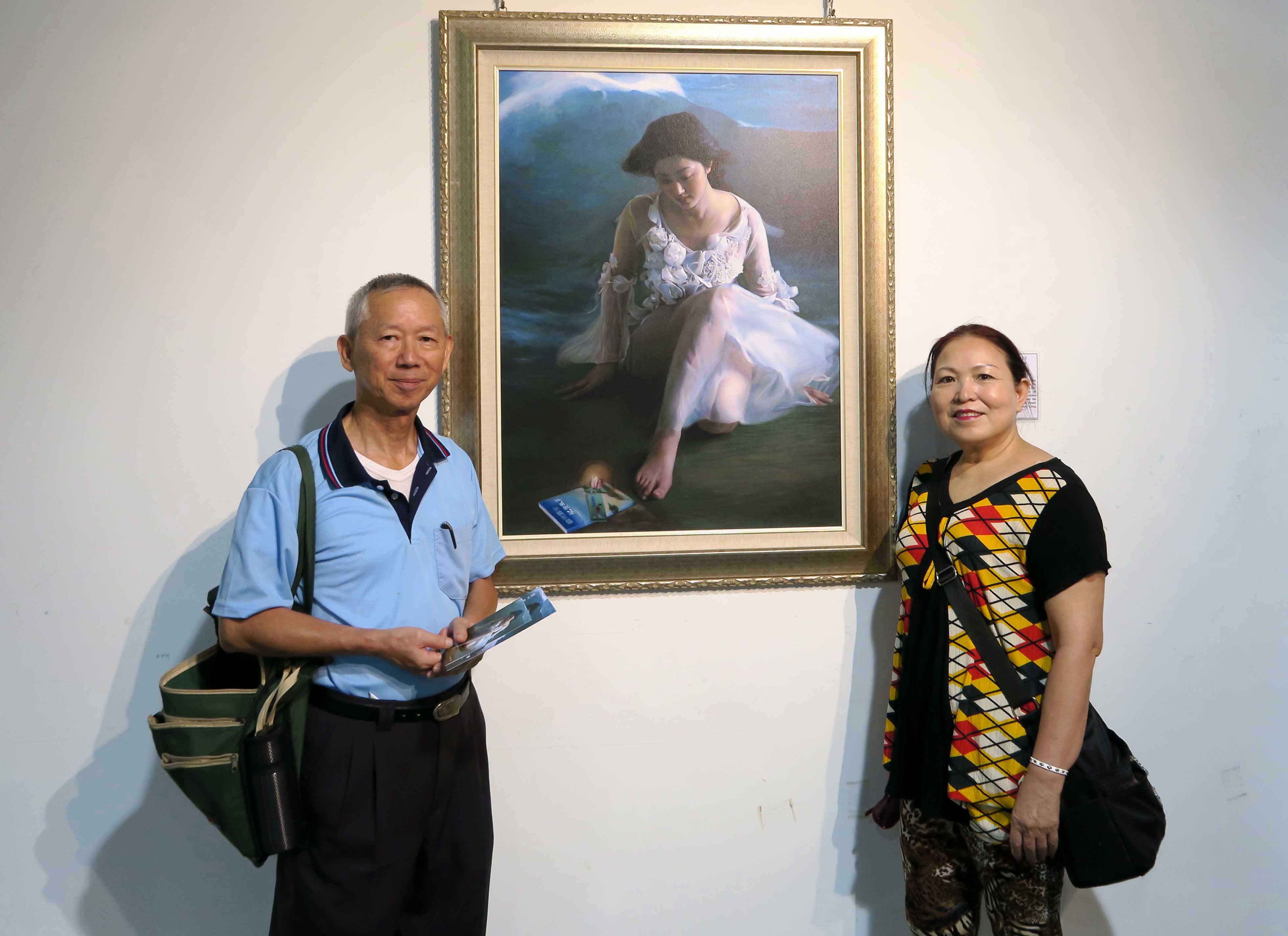![]() 已退休的裴浙昆将军夫妇赞扬画作传神,还要再来看一次。 |