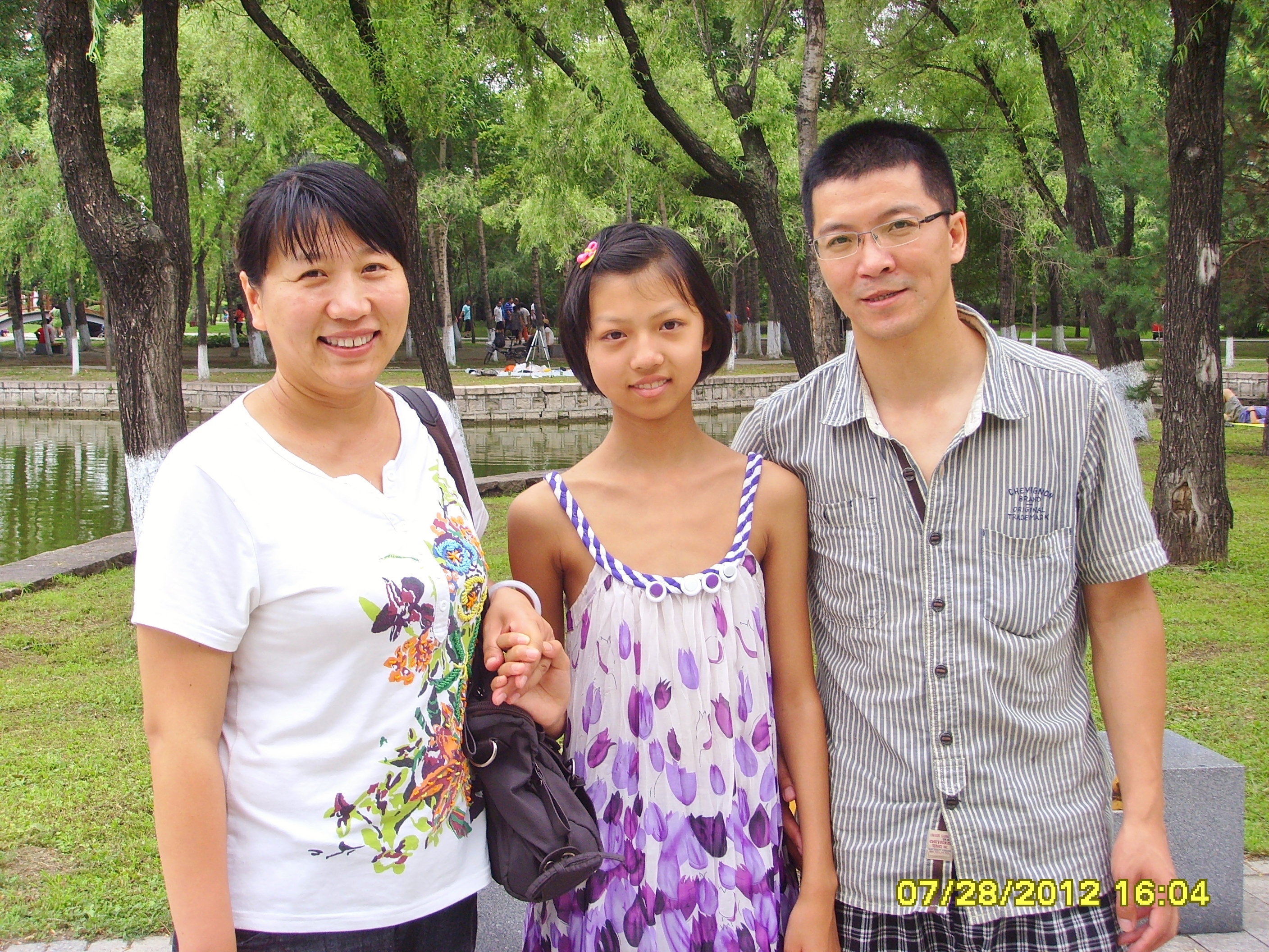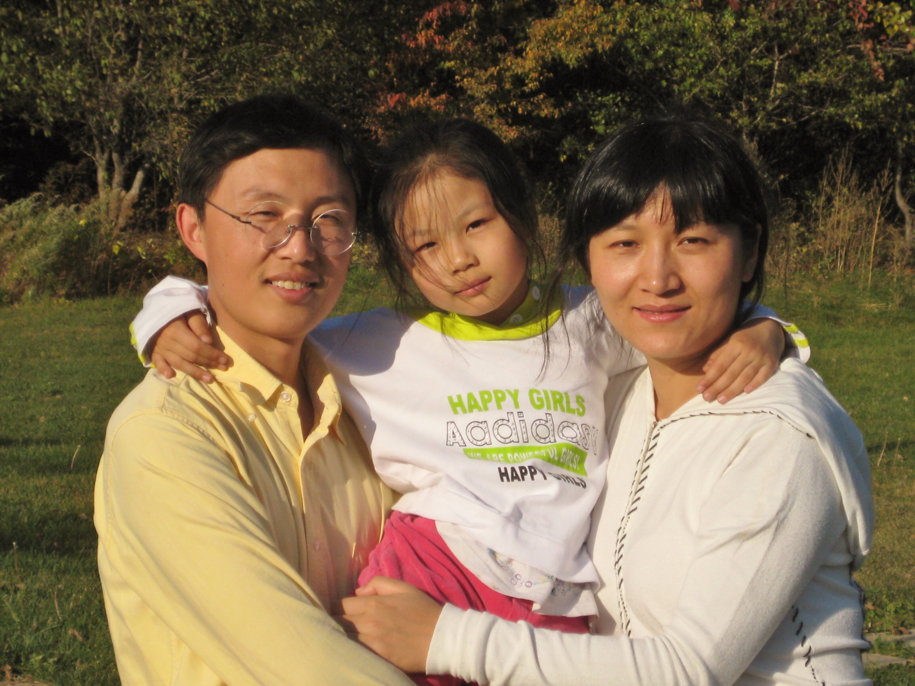 吕适羽(左)和丈夫韩伟(右)及他们的女儿(中)