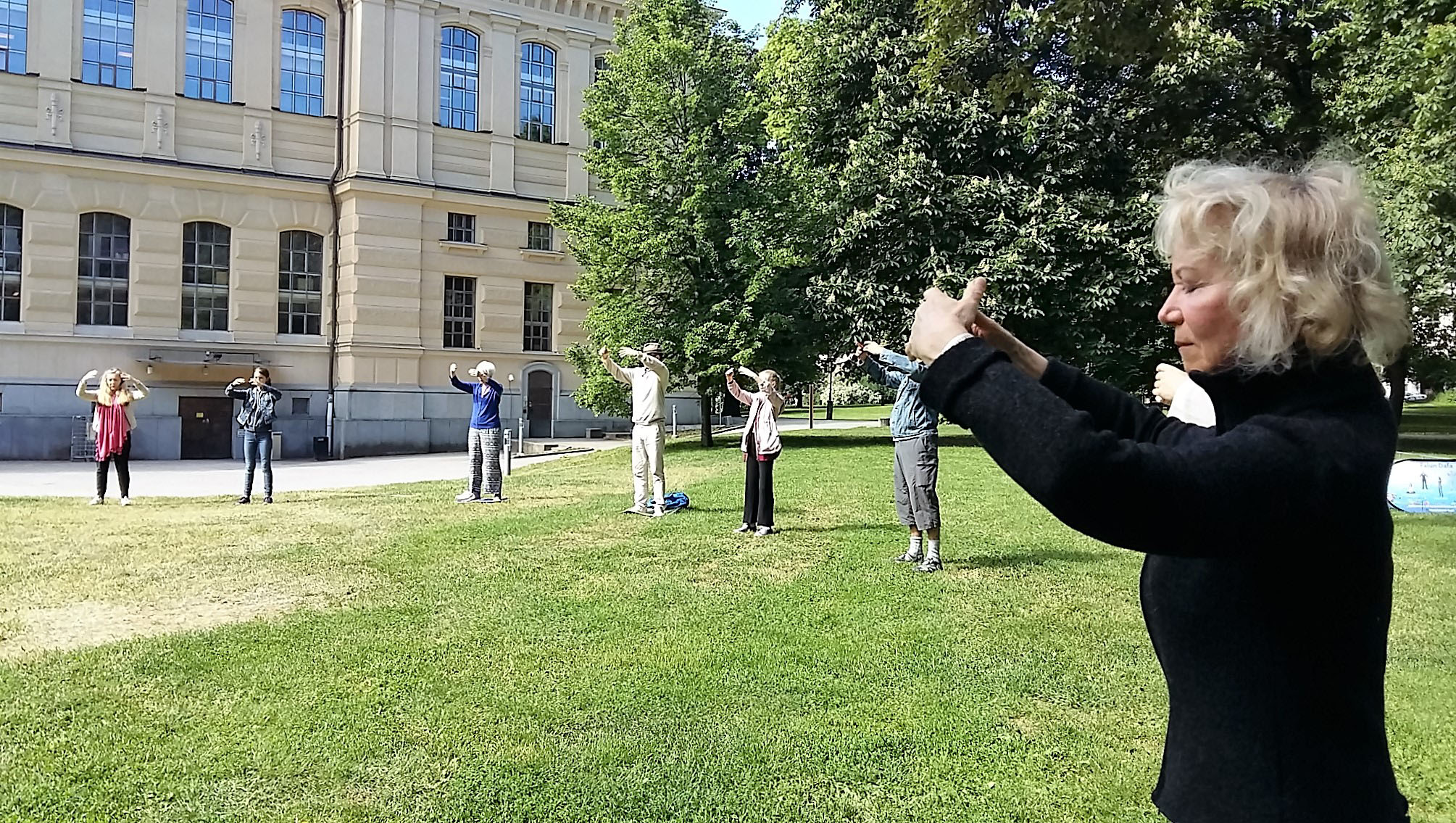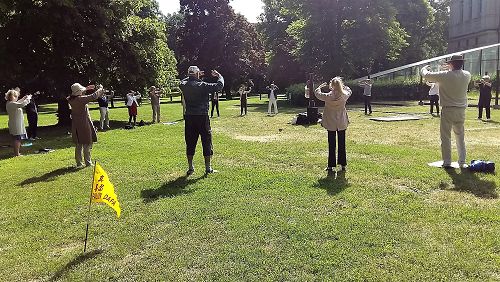 【明慧网二零一六年六月八日】在瑞典首都斯德哥尔摩市区,有一个著名的酒花公园(Humlegården)。这个公园以茂盛的酒花树而获名。除了酒花和一年四季绿草青青之特点外,这个公园还有一个法轮功学员的炼功场。近二十年来每个周日上午,法轮功学员都在这里炼功、教功和讲真相。祥和的炼功场使这个公园更加美丽。