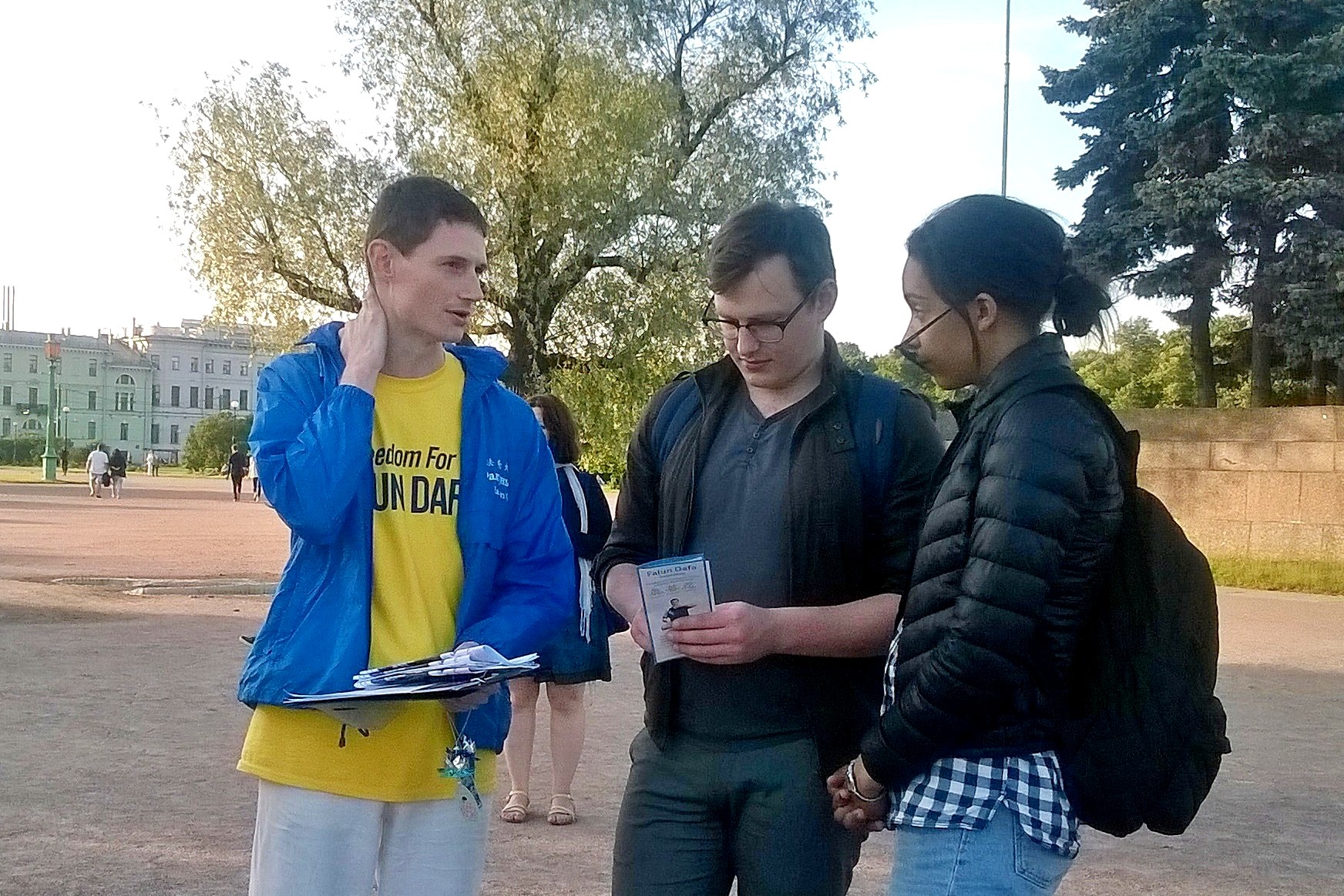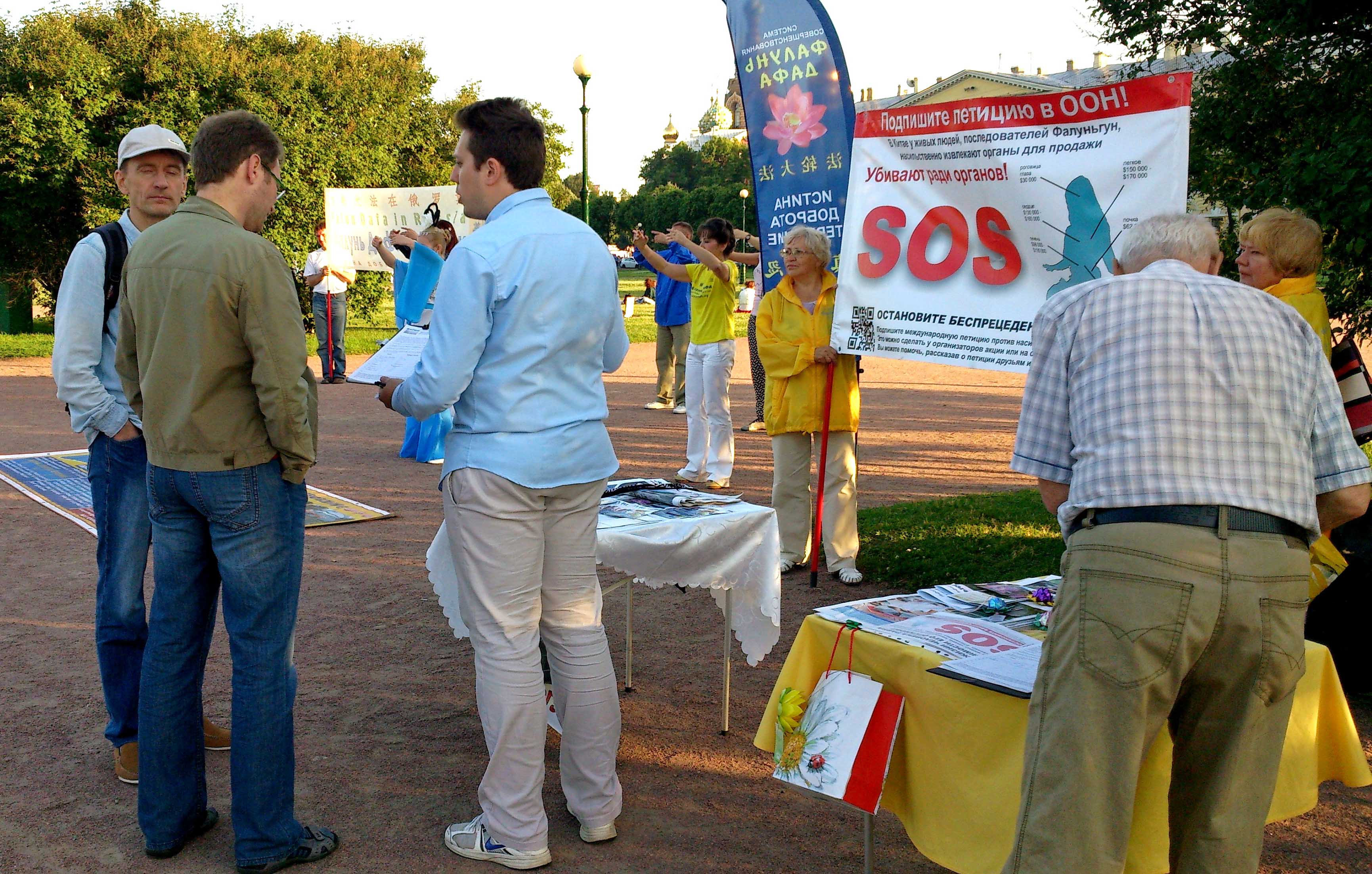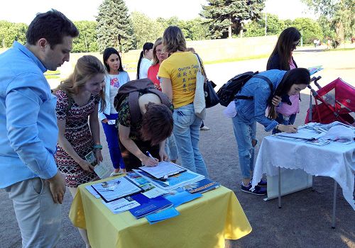 这两天,签名支持法轮功学员制止中共迫害和活摘器官的人很多,他们中有来自前苏联各国的游客,还有阿塞拜疆人和维吾尔人。很多年轻人,大学生也来了解真相,一开始他们不敢相信在当今社会居然存在“活摘”这样的罪恶,但听完法轮功学员的讲解,他们都签名支持制止迫害和活摘,并说,世间苦难太多,但对法轮功学员如此残暴迫害是绝不能容忍的。也有的说,我们要更主动些,看到这样的事不能置之不理,要让全世界知道这件事。