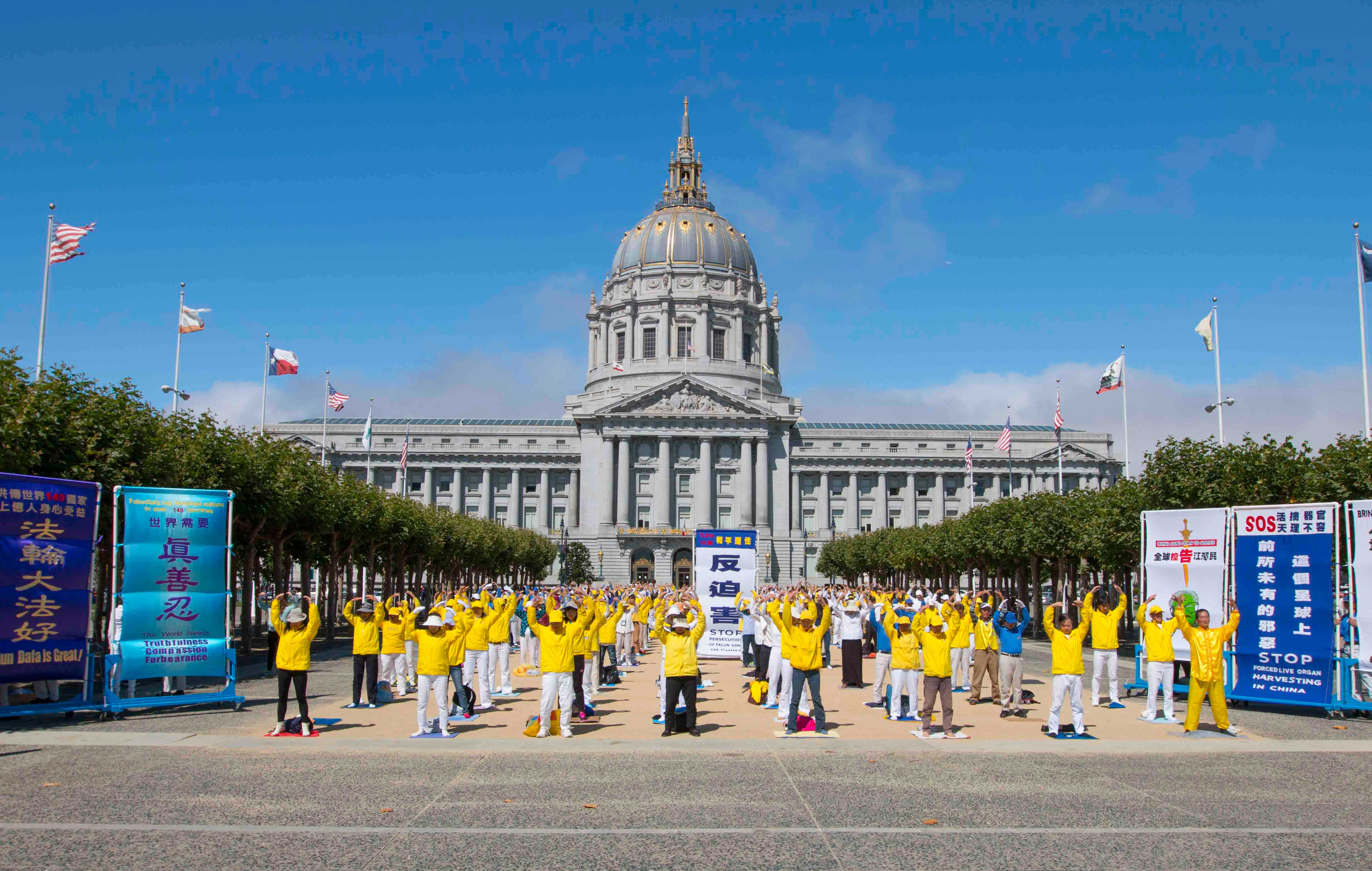 ![]() 法轮功学员在市政厅广场炼功 |