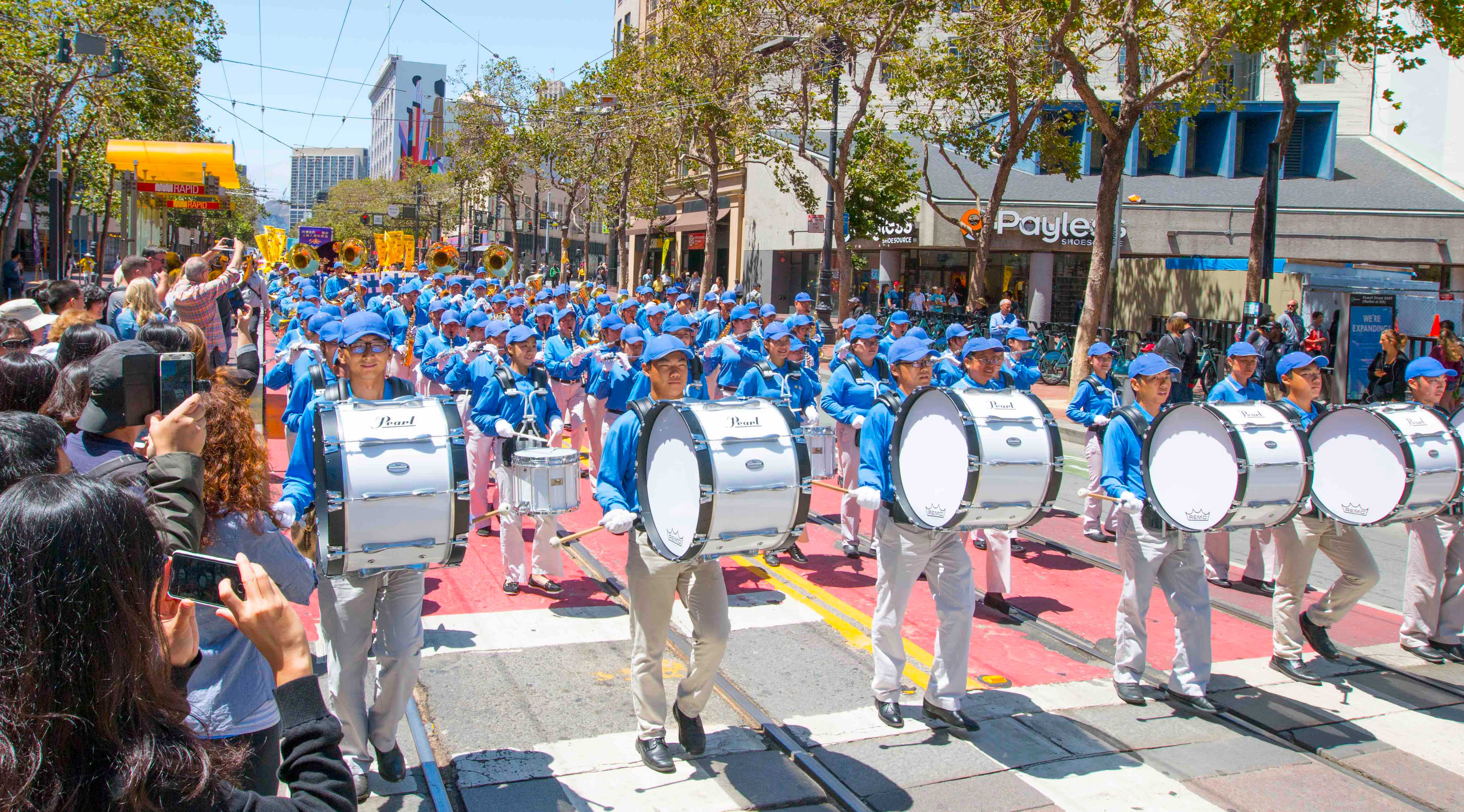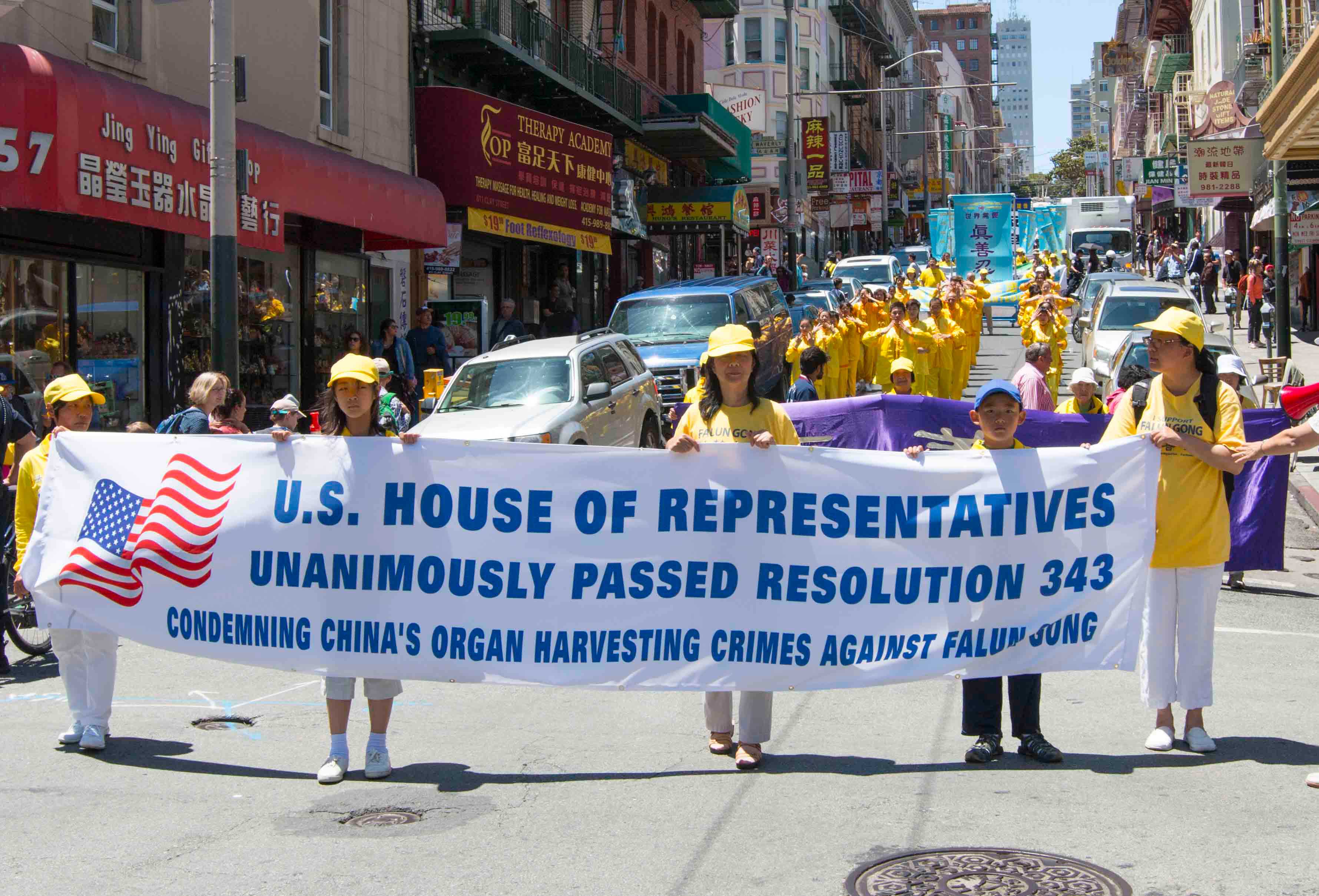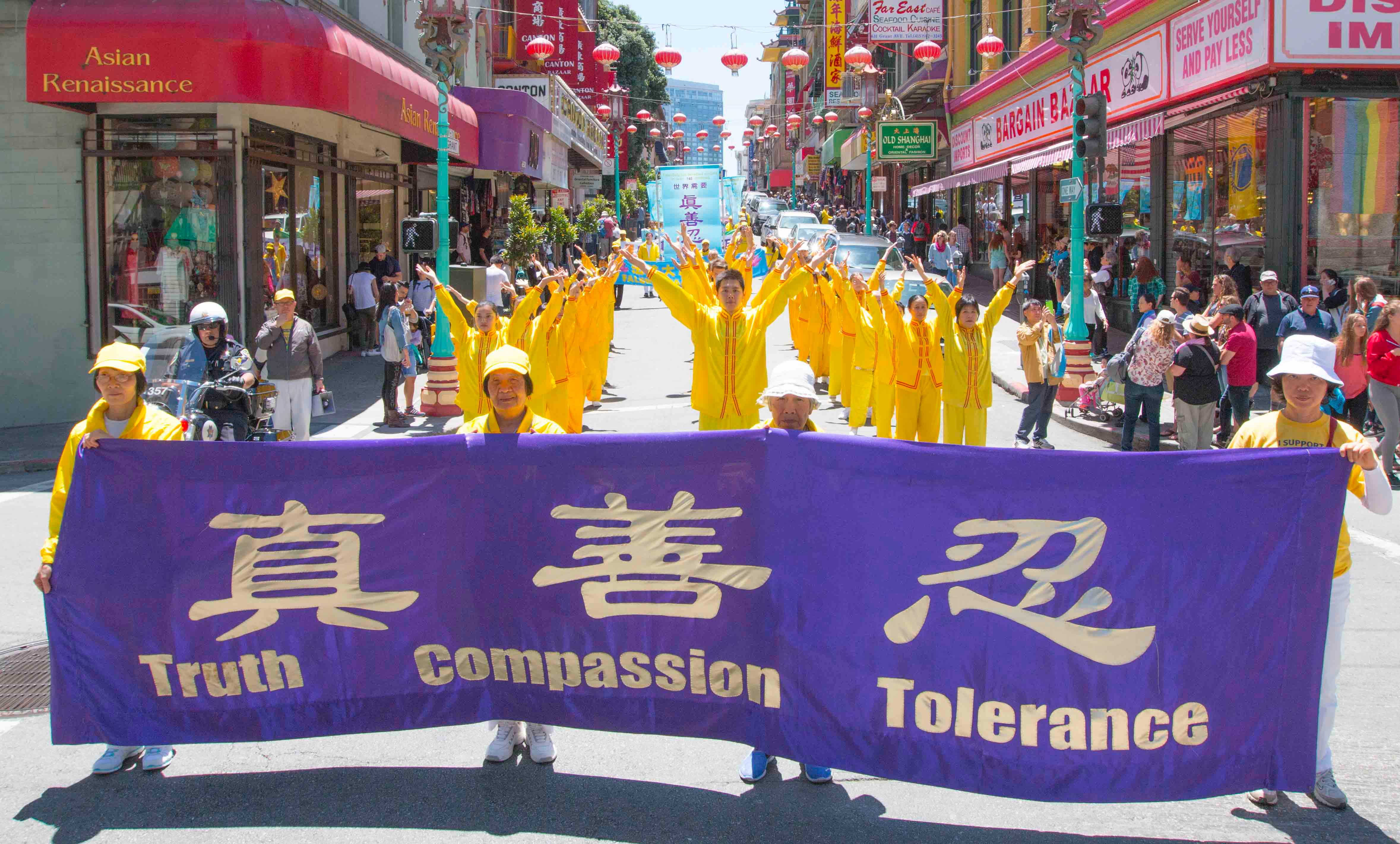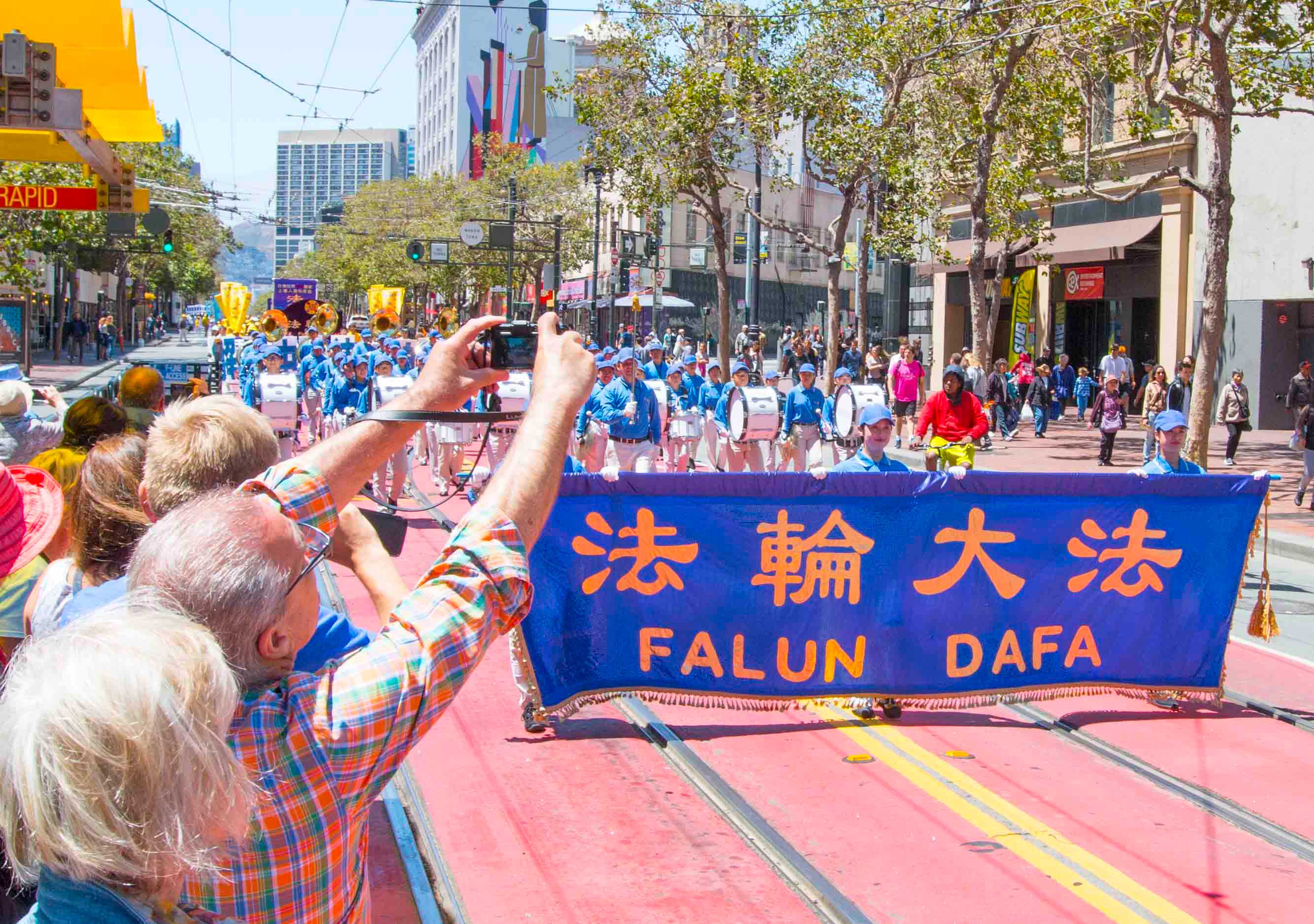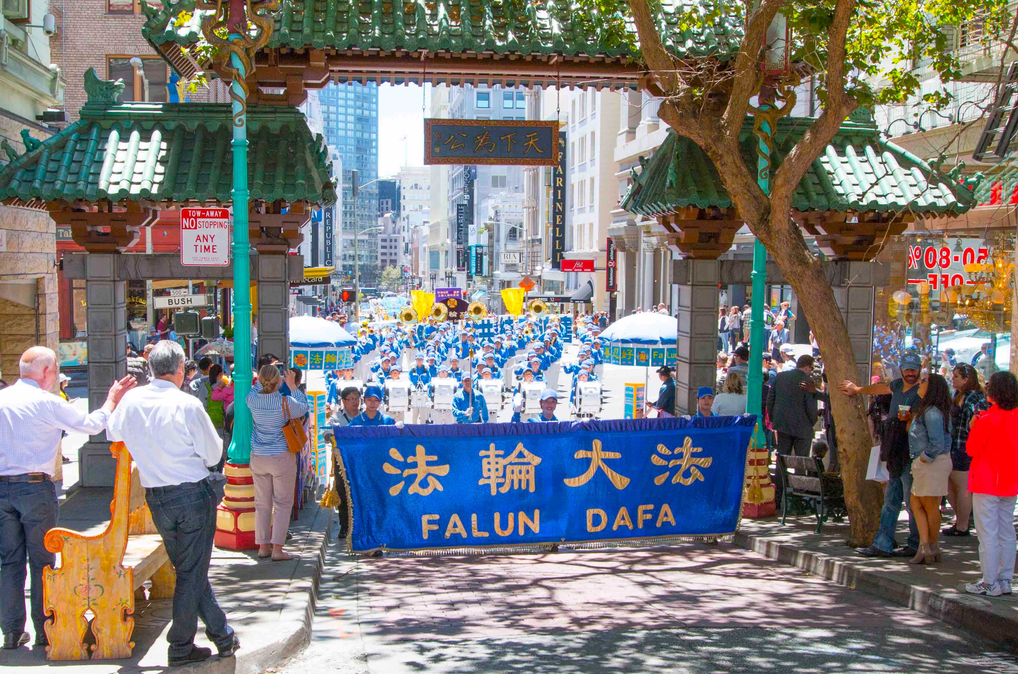 ![]() 游行队伍进入中国城唐人街 |