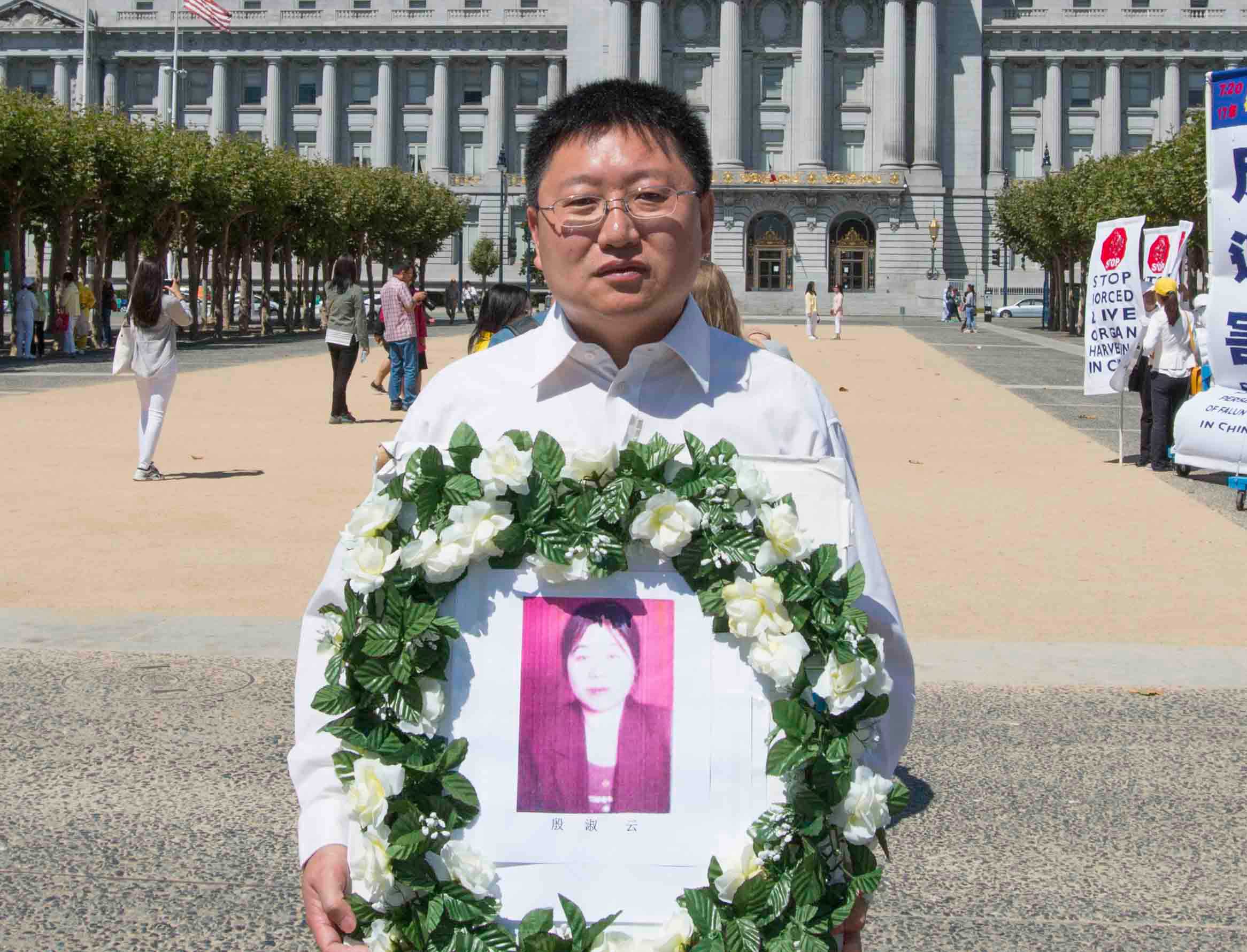 走在游行队伍中手持被迫害致死法轮功学员殷淑云遗像的高睿表示,殷淑云是他在长春学法小组时的同修,她是长春第一个被迫害致死的学员。他说:“我希望捧着她的遗像游行,让世人知道中共对法轮功学员长达十七年的迫害,而且中共还在活摘法轮功学员的器官,这些滔天的罪恶,令人发指的罪行应该尽早结束。”