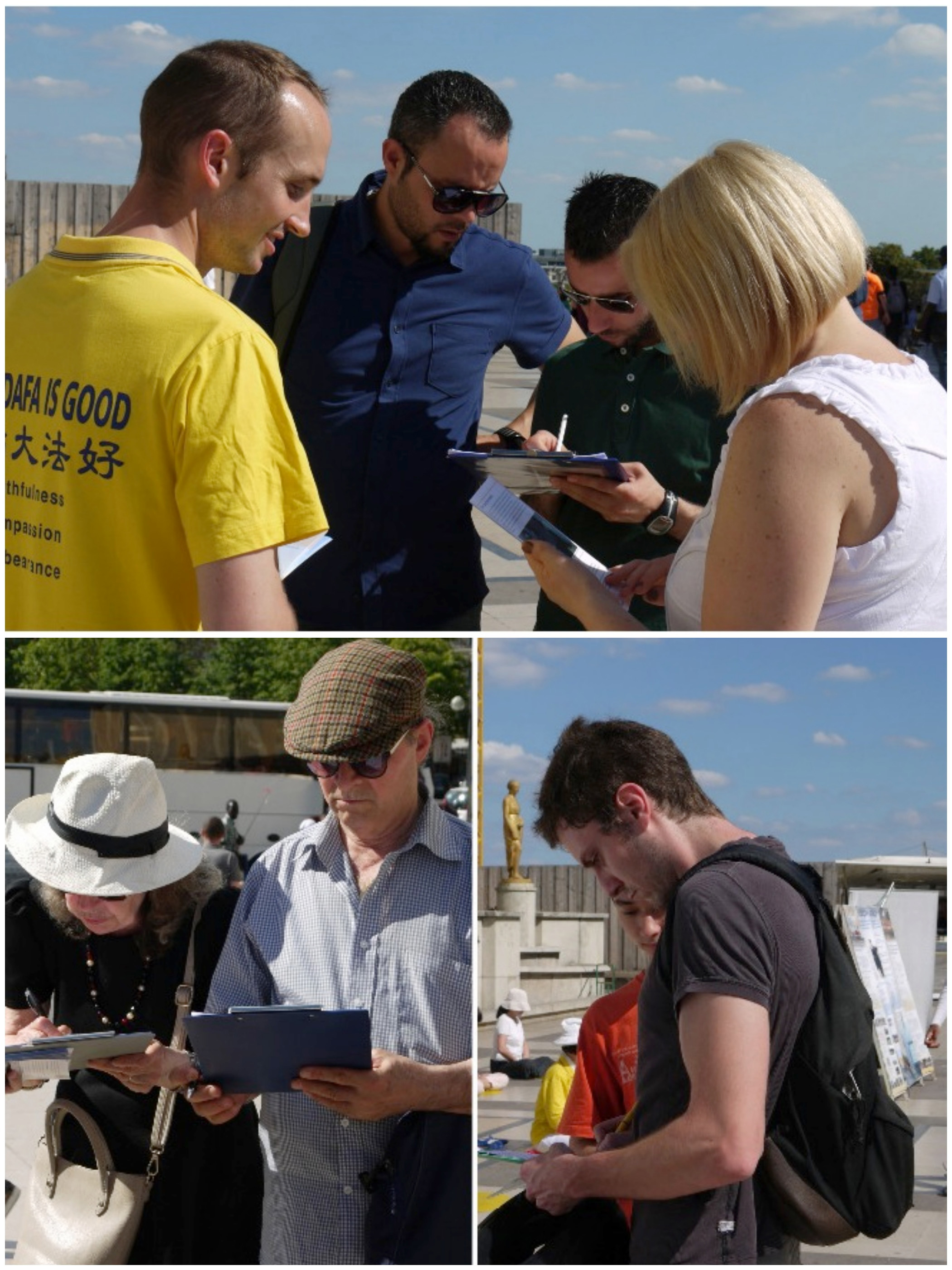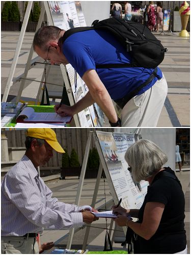 ![]() 图1-3:来自世界各地的游客纷纷签字支持法轮功反迫害,表达他们的心声 |