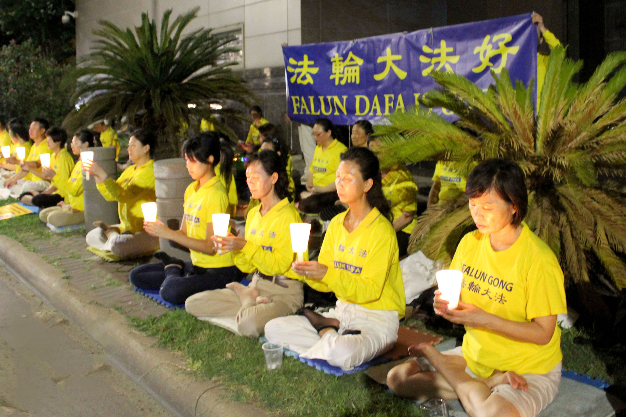 在这之前的七月十六日夜晚,法轮功学员中领馆前烛光悼念,悼念被迫害致死的法轮功学员,学员手持腊烛,烛光闪闪,庄严宁静的场面,使路人驻足观看,想要了解发生了什么,有一位名叫阿备(Tamir Arbel)的年青人听完真相后,毫不犹豫地在“制止活摘器官”的签名表上签名,并且与学员合影。