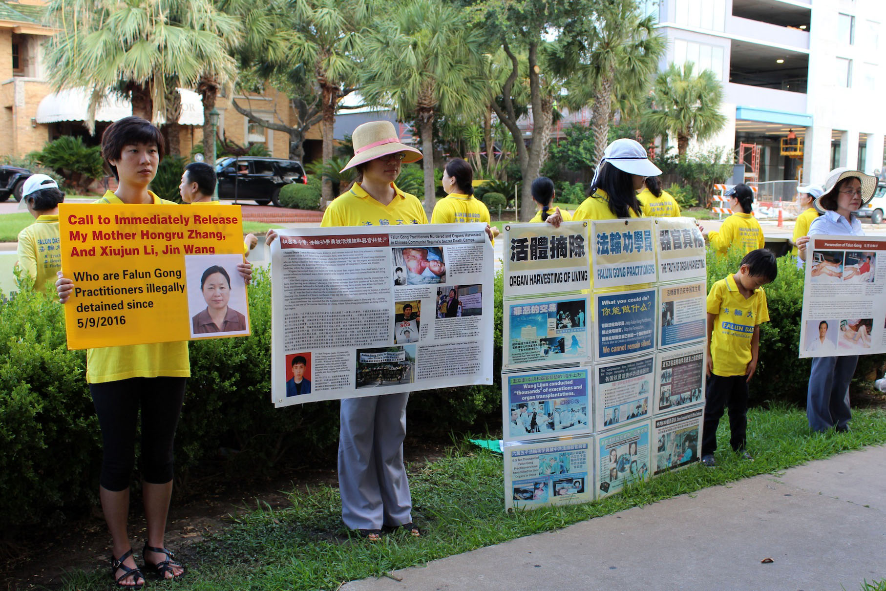 ![]() 休士顿学员中领馆前举行和平理性集会,掲露活摘器官 |