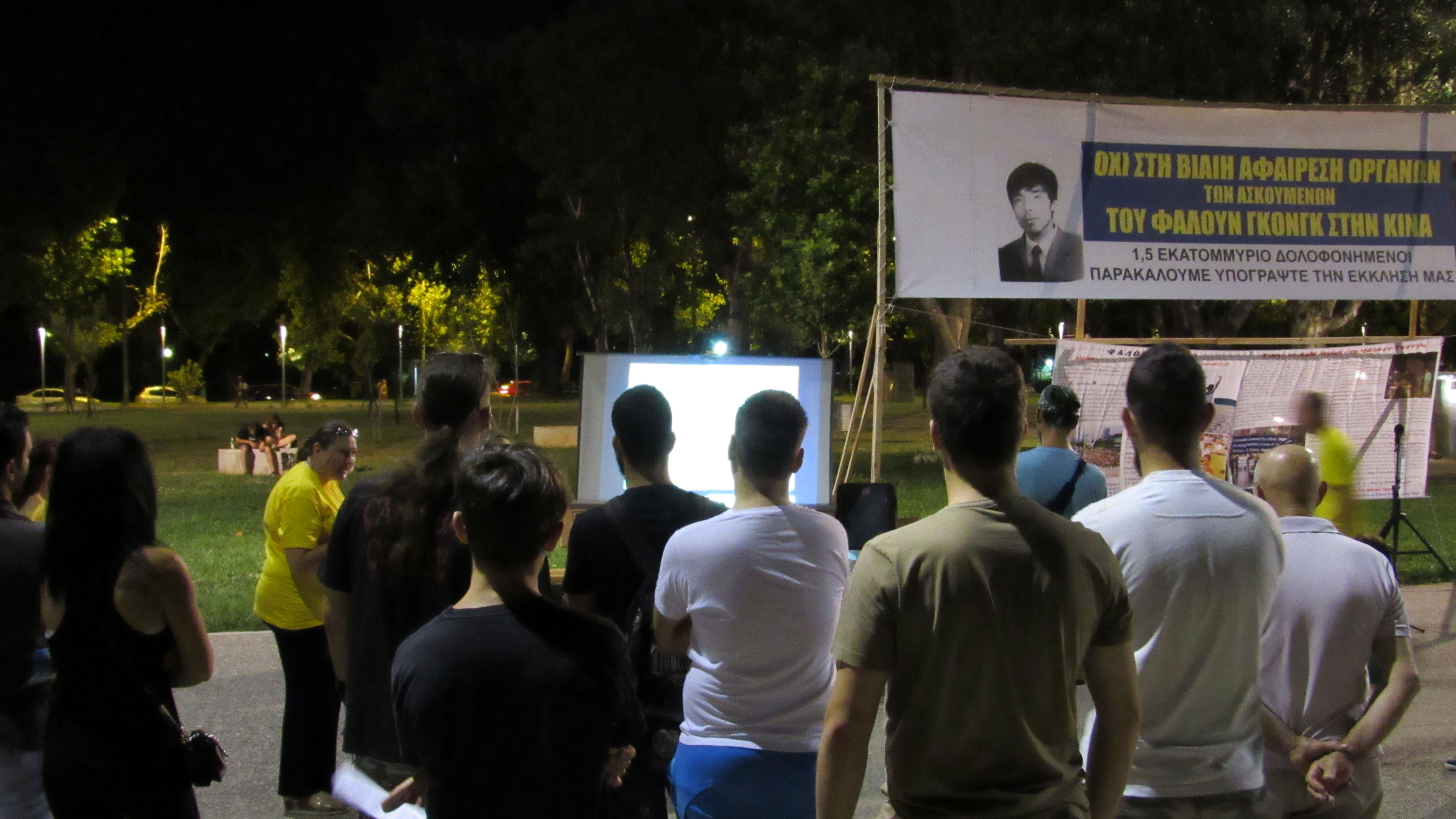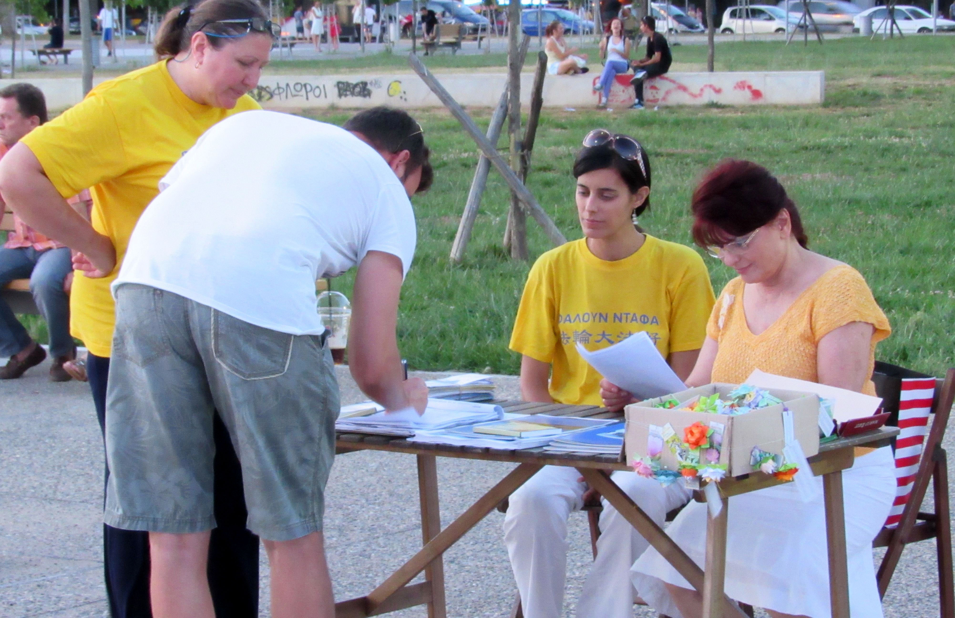 来自雅典等地的法轮功学员,在塞萨洛尼基市主要景点帕拉利亚(Paralia)打出横幅,告诉民众中共对法轮功的残酷迫害,以及活摘法轮功学员器官罪行,同时举行了支持起诉江泽民的征签活动。