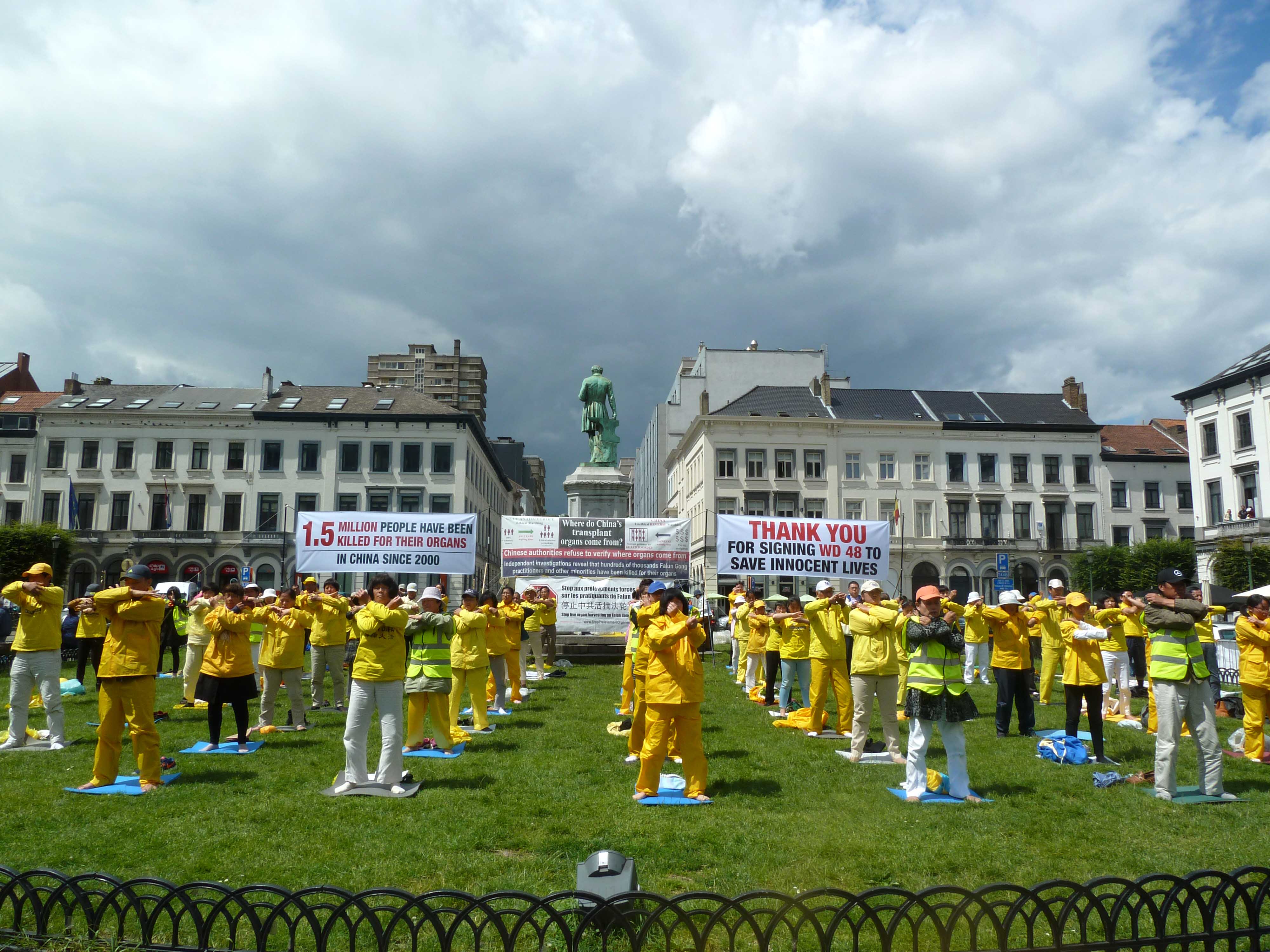 ![]() 二零一六年七月十二日到十四日之间,法轮功学员在布鲁塞尔欧洲议会外展示功法,讲述中共活摘法轮功学员器官真相。 |