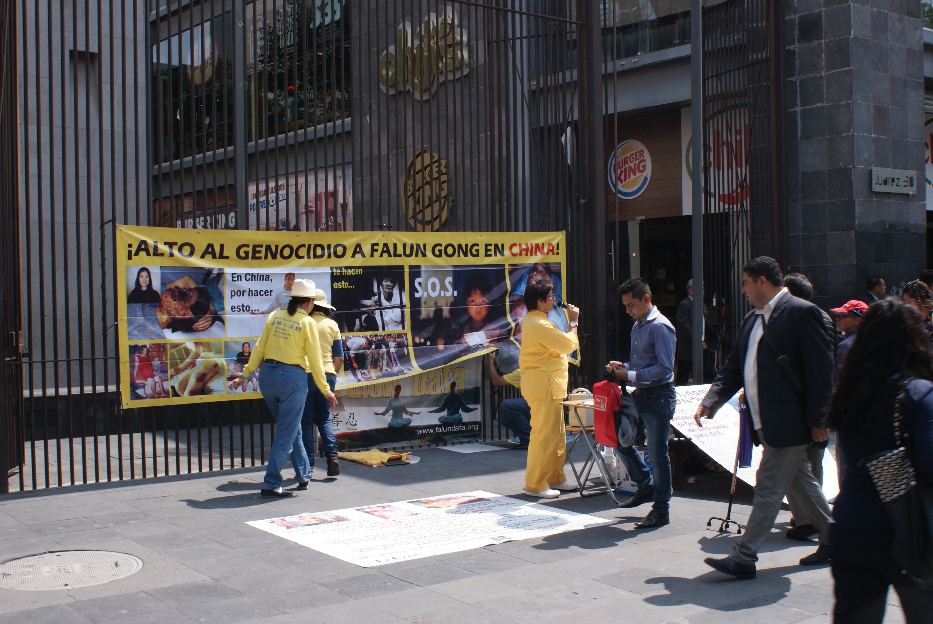 为支持中国大陆同修的和平理性反迫害,墨西哥城、普埃布拉市(Puebla)、克雷塔罗市(Queretaro)和坎昆(Cancun)的墨西哥学员组织了各种讲真相活动,揭露中共对法轮功学员的残酷迫害。在五天的活动中,法轮功学员进行了炼功、制止活摘征签、腰鼓表演、叠纸莲花,并在中领馆前举行集会,要求停止迫害。