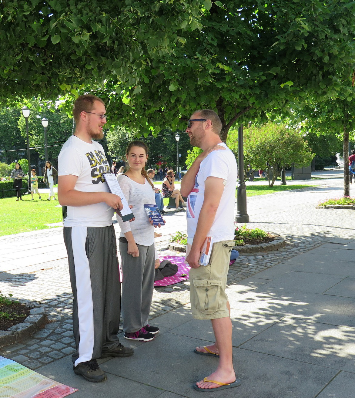 ![]() 挪威民众了解中共迫害法轮功真相,签名反迫害 |