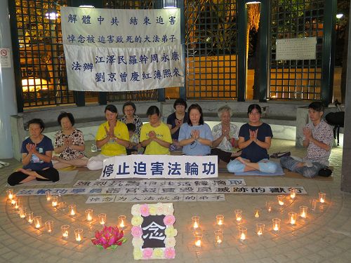 活动中,澳门法轮功学员打出“停止迫害法轮功”、“解体中共、结束迫害”、“悼念被迫害致死的大法弟子”等横幅。自1999年7月20日江泽民流氓集团发动残酷的迫害开始,中共迫害法轮功已持续了17年,法轮功学员的反迫害也持续了17年,从来没有间断。