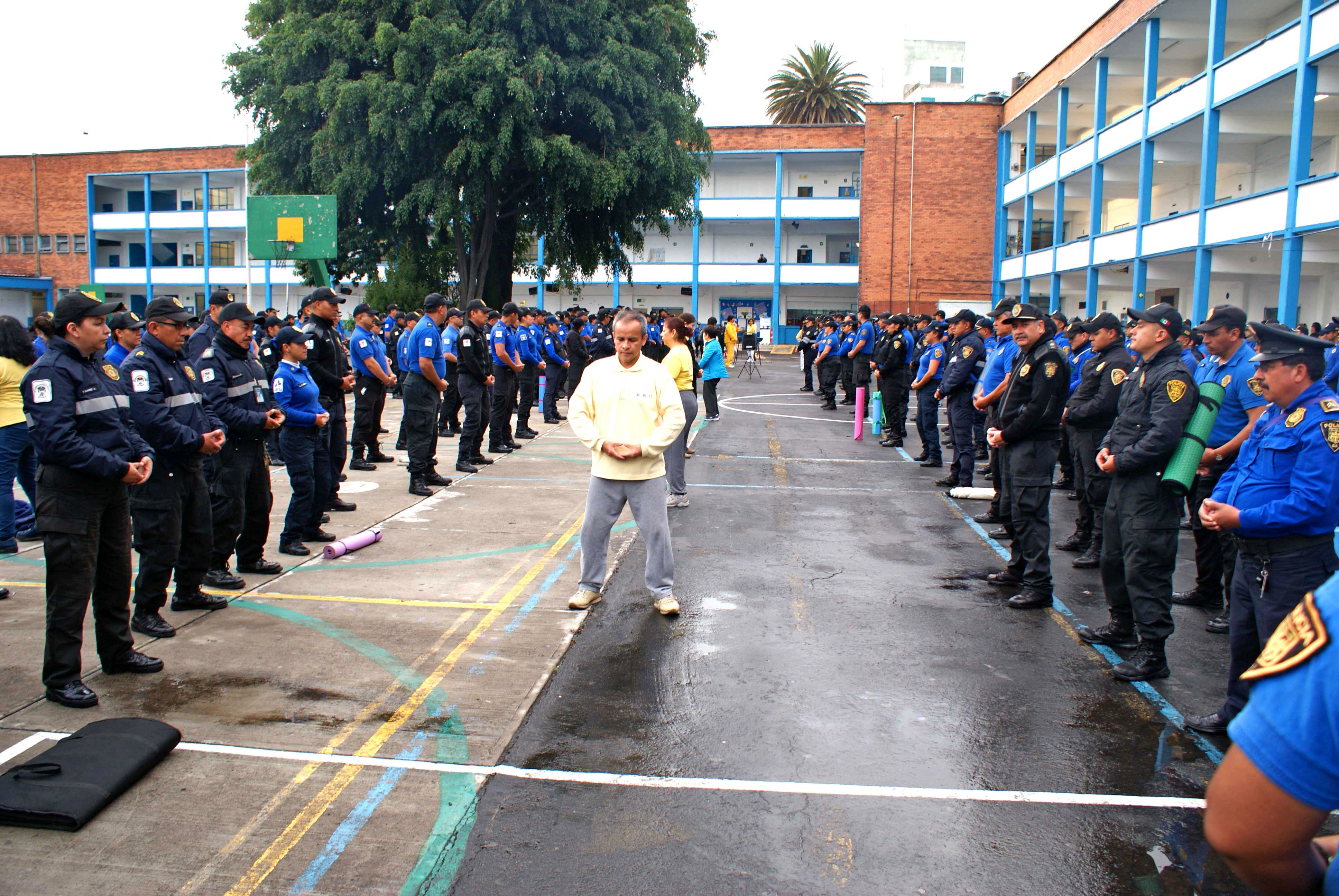 ![]() 图1-3:墨西哥警察在学炼法轮功功法 |