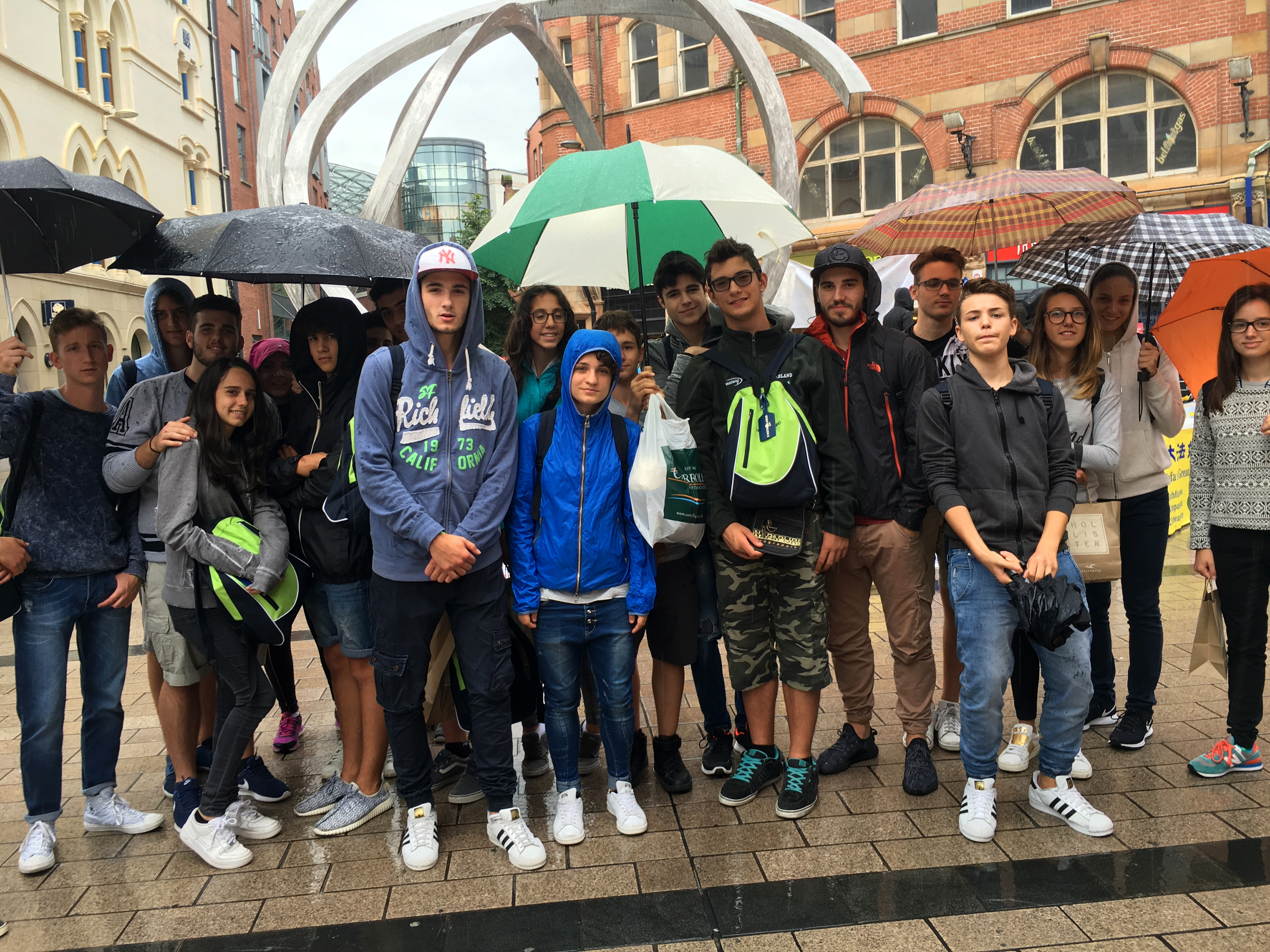 雨一直下,但法轮功学员坚持向各界民众讲述中共活摘法轮功学员器官牟取暴利等真相。很多明真相的人们冒雨签名支持法轮功,场面感人。一群来自意大利的学生得知中共迫害法轮功的详情之后,表示:“真的难以置信,这样的事情会发生在当今社会。我们要签名!”他们互相传递着真相,最终23名学生都签了名。