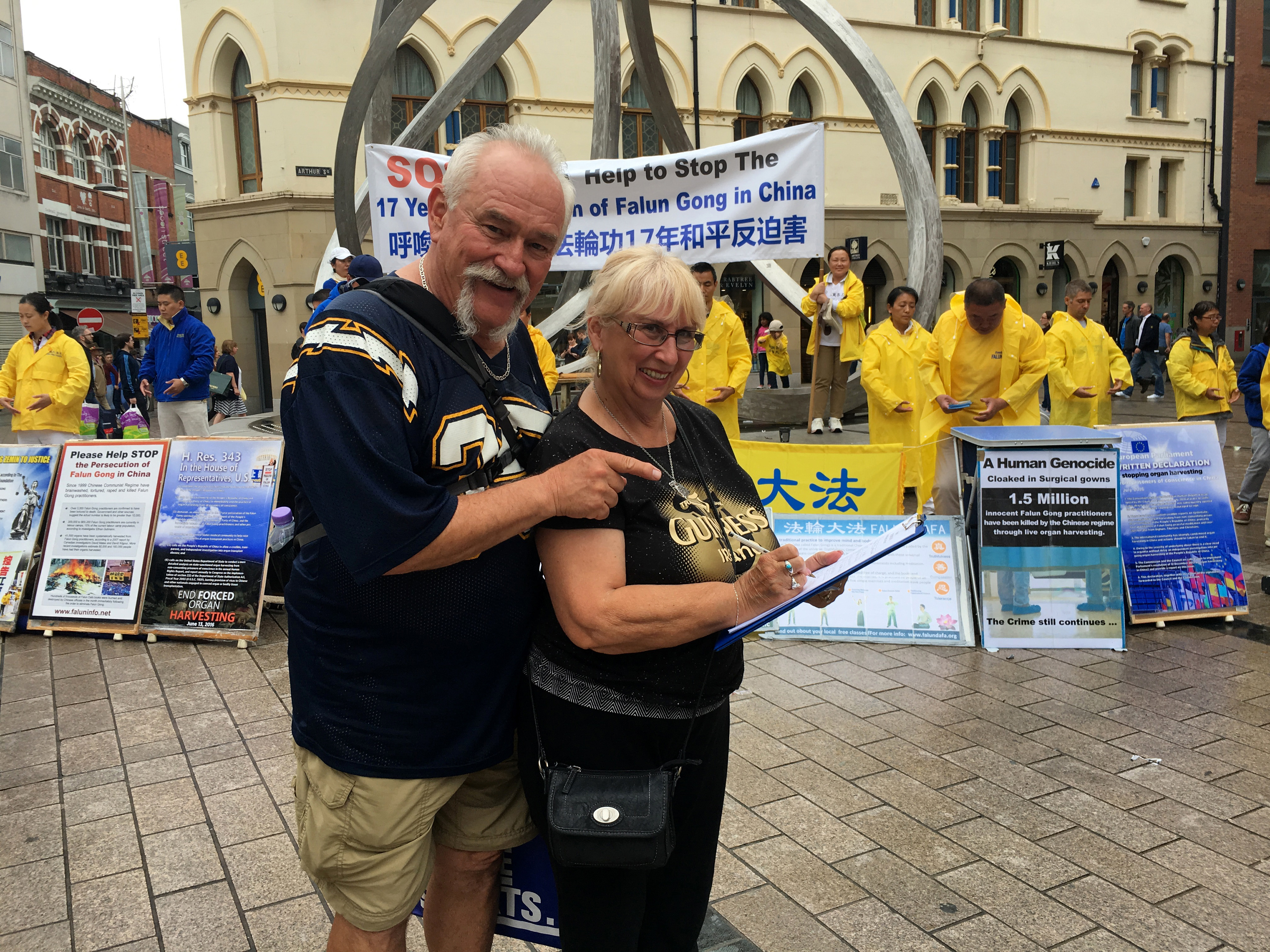 来自美国的威廉姆斯(Villiams)夫妇看到法轮功真相展板之后,激动地说:“我们要签名!我们早就知道法轮功被迫害的消息!”他们还说:“我们曾经去过中国教书,亲身见证了法轮功学员在天安门广场遭受的不公正对待。”最后他们还指出:“这样邪恶至极的罪行至今发生在中国,我们每个人都有责任制止迫害。希望中国人民早日脱离中共的胁迫。”
