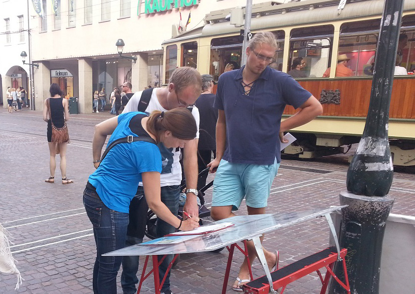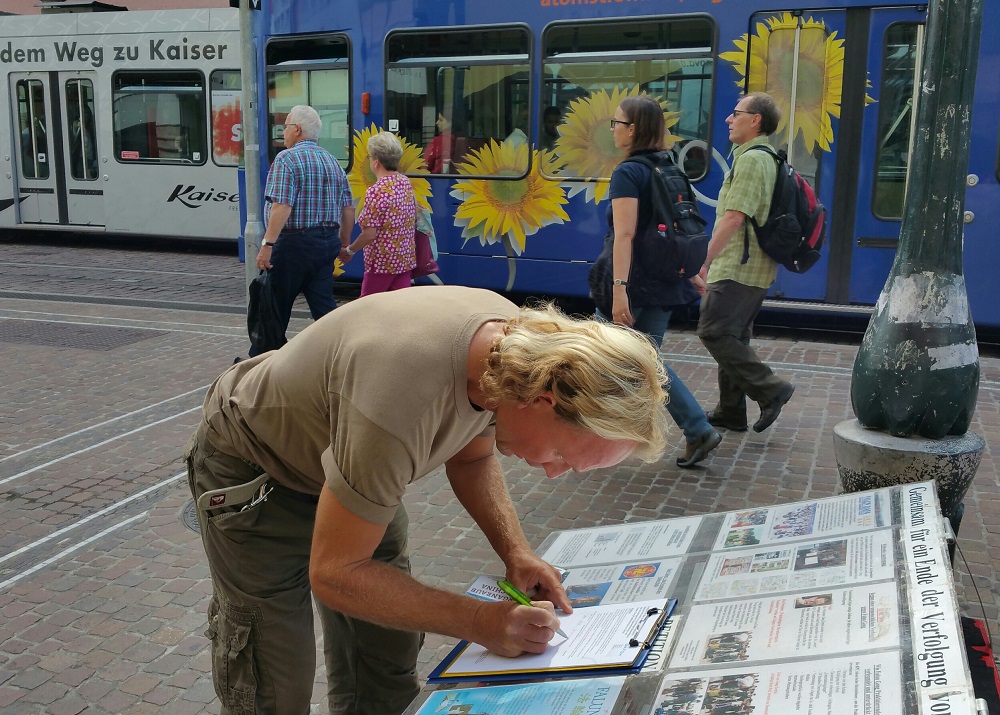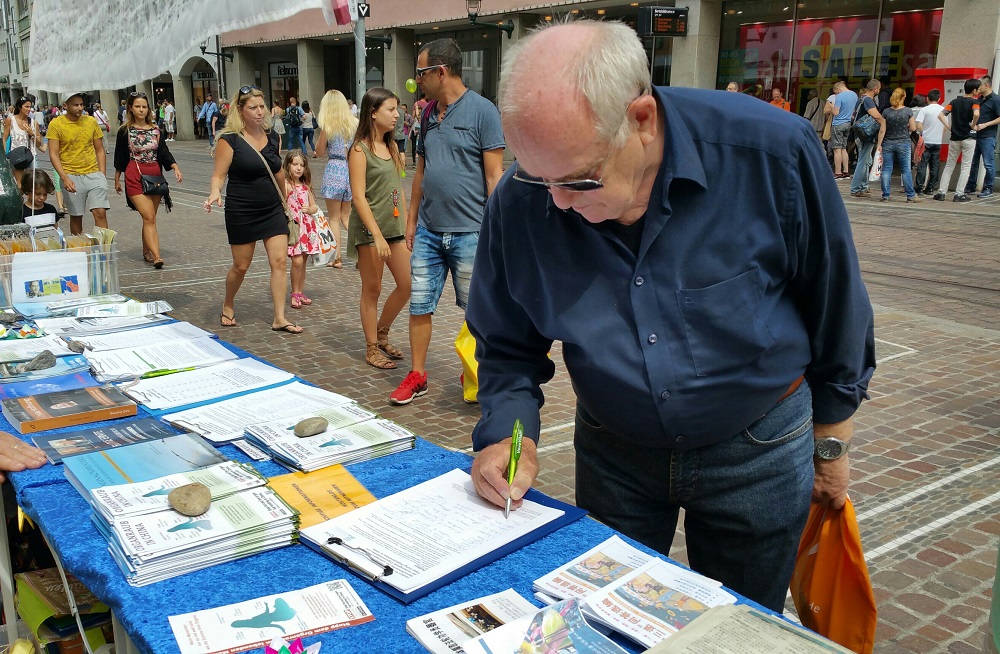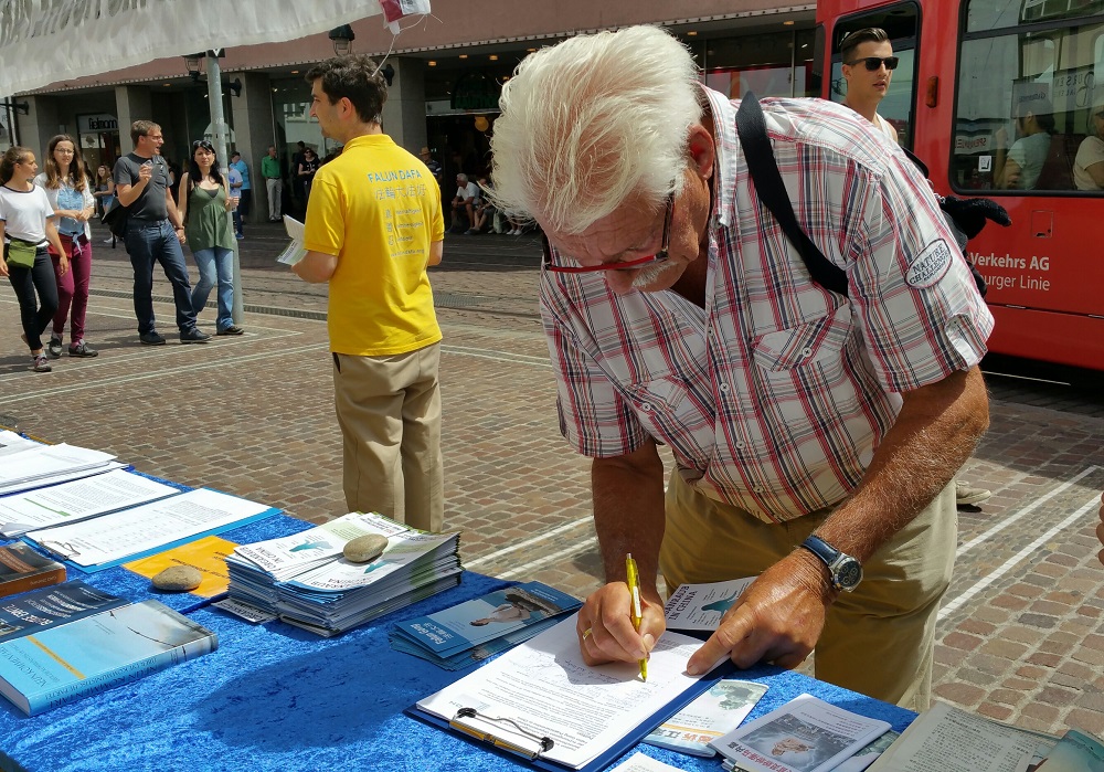 ![]() 图6:Engelhard 先生正在签名支持制止迫害。 |