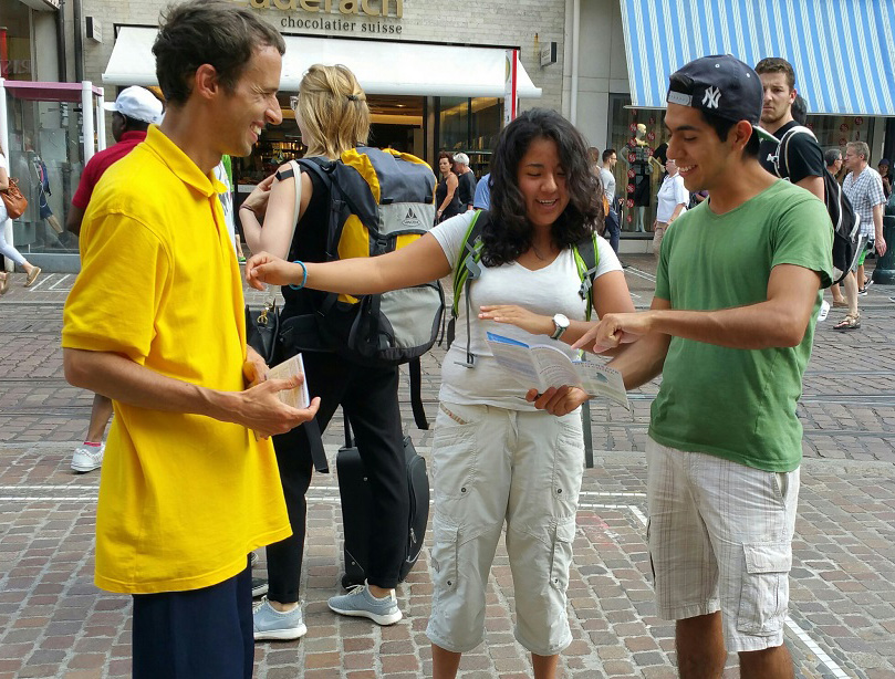 他们最多的问题是“中共为何迫害法轮功?”当听到法轮功是一种上乘的佛家修炼功法,是以“真、善、忍”为指导的,而中共是以暴力、谎言起家,靠“假、恶、斗”维持生存的时候,游客立时明白了:噢,是价值观不同!前者是非常棒的普世价值,而后者绝对是反人类的。当听到在中国学炼法轮功的人有近亿人,超过了中共党员人数时,游客立时说:我懂了,是共产党害怕了,它不是民选政府,怕被推翻。