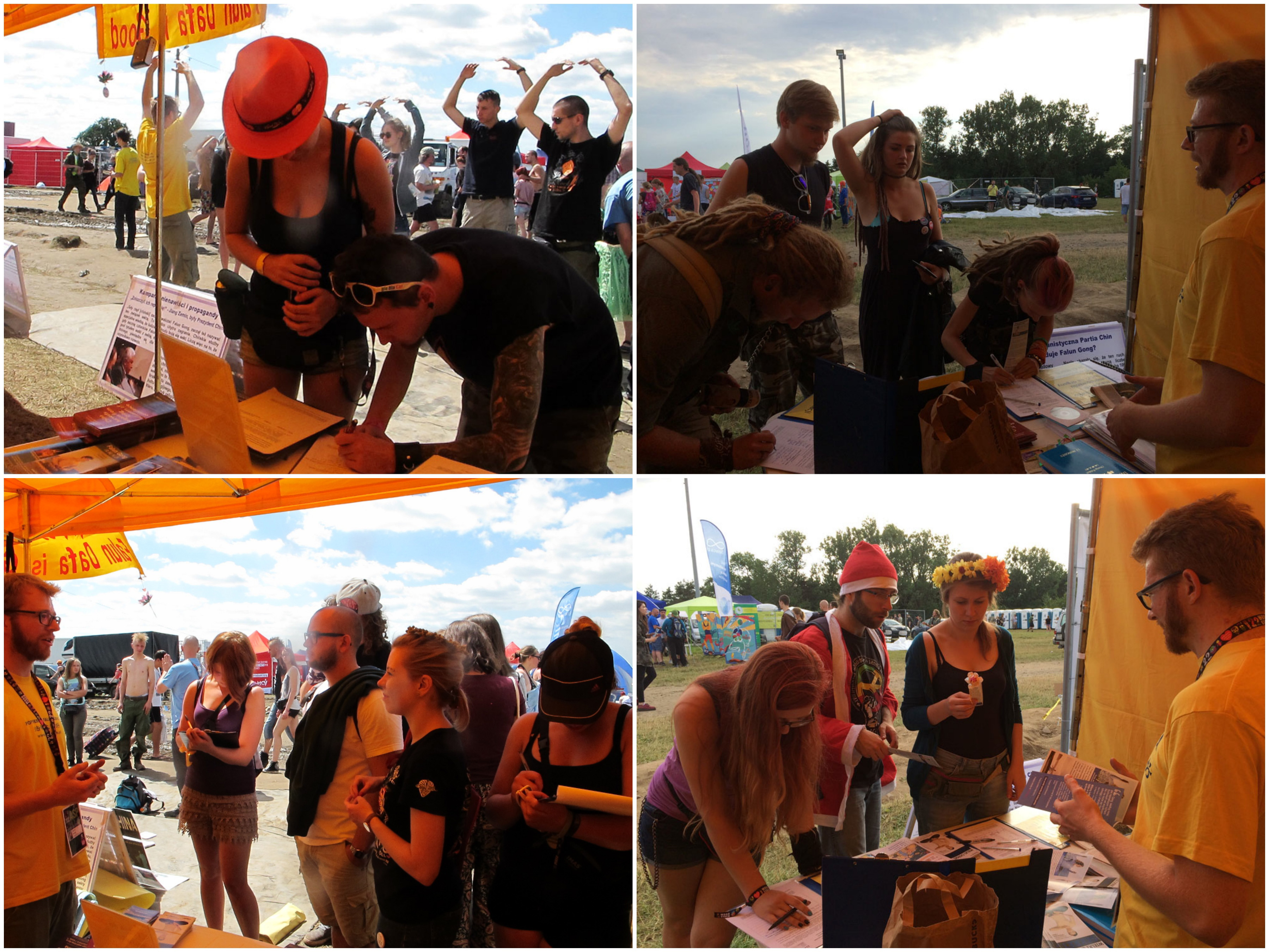 七月十二日至十七日波兰学员在波兰-德国边界城市Kostrzynia举办的最大音乐节(Woodstock)上开展讲真相活动,官方报道有近三十万人参加该音乐家节,绝大多数为年轻人,波兰法轮功学员粗略统计有近万人前来了解法轮功真相,大家纷纷在反迫害证签簿上签名,对学习法轮功功法更是热情高涨,受到年轻人的极大的欢迎。