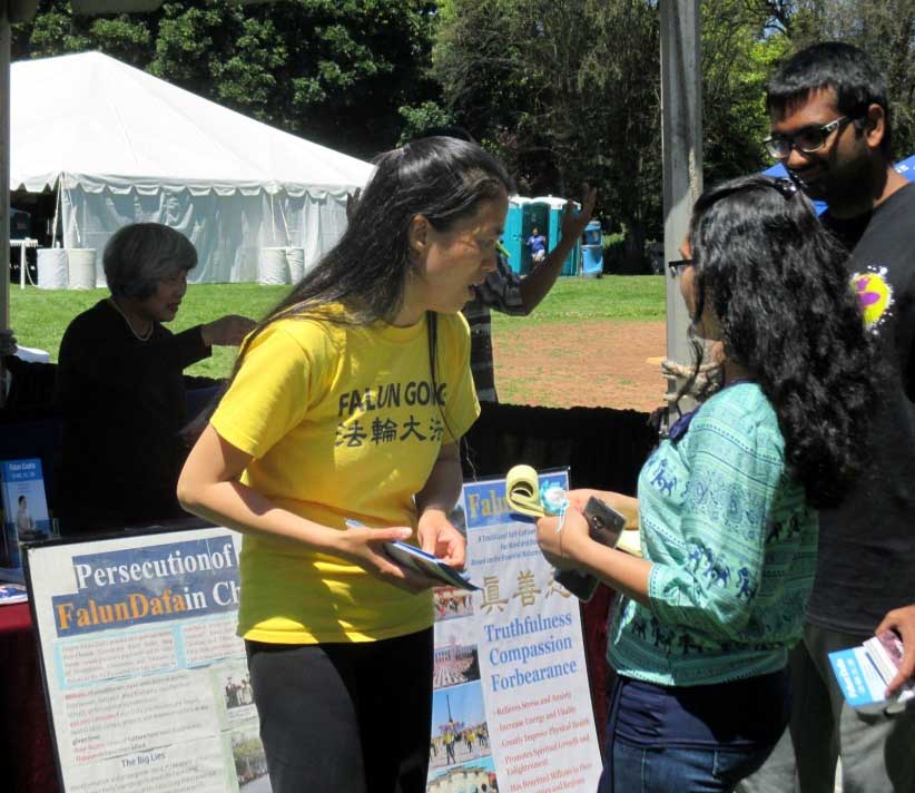 人们对在中国发生的迫害难以理解,他们问这么美好的功法为什么共产党不接受。当学员告诉他们共产党害怕中国人有自由的思想,去遵循“真善忍”而不受它的权力控制时,人们立刻就明白了,他们表示早就知道共产党的邪恶。一位男士说,世界这么小,我们都在其中啊。谢谢你们在这里告诉更多的人,你们今天让我受到一场深刻的 教育。