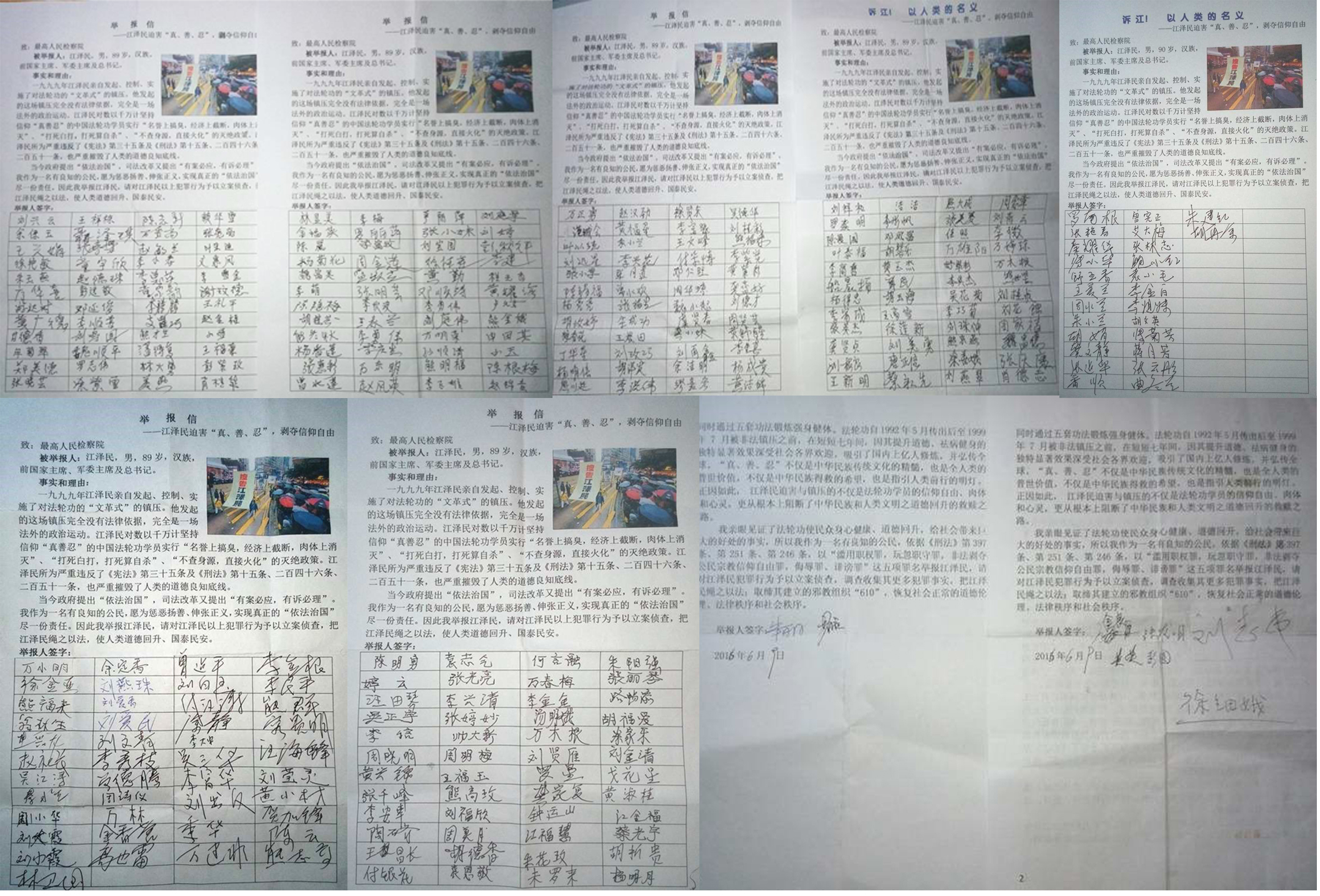 以上联名签署的举报信已通过邮局或网络投递给最高检察院、最高法院。