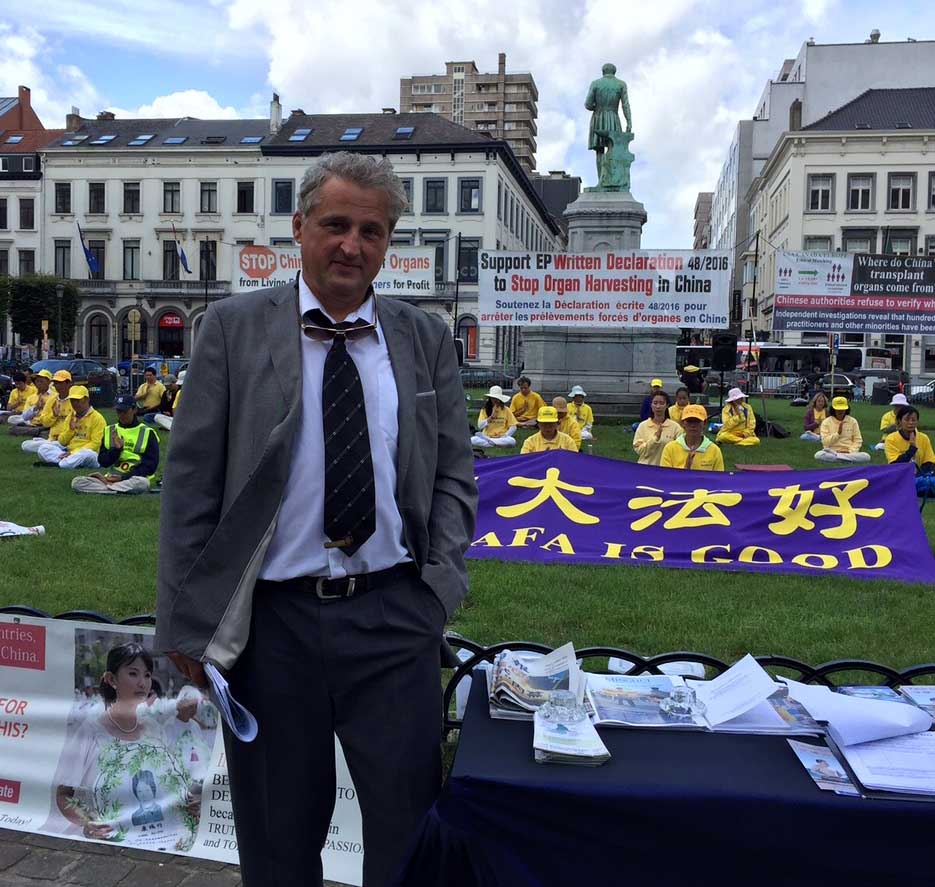 Lozz先生是比利时的一位生意人,他的工作范围很广,比如文物保护、健康和企业。他对法轮功学员表示:“我只想说,我很高兴你们在这里。全世界都应该知道你们所做的,这是那个世界最大的国家的耻辱。你们来到布鲁塞尔是对的,这里有二十八个国家,每一个人都应该知道,你们做得很好。祝贺你们,坚持!继续!上帝保佑你们!”