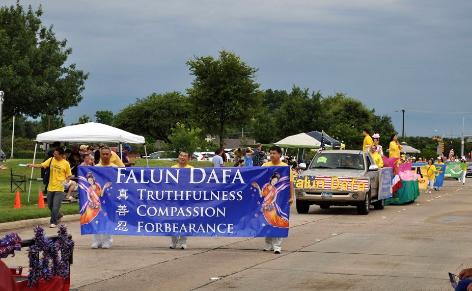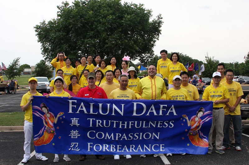 布兰诺市是位于达拉斯北部一个人口二十万多万的富裕城市,亚裔人口众多,国庆大游行由本市的狮子会主办。在过去几年中,法轮功学员都参加了这个游行并获奖。狮子会的乔治先生说:“活动没受天气影响,报名的团体都来了,其实这天气真的是太好了!”他很高兴法轮功学员再来参加。