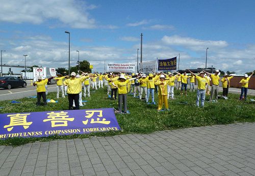 在这里也有来自不同国家的各界民众经过,当他们看到祥和的炼功场面,不少人停下脚步观看揭露中共迫害法轮功、活摘法轮功学员器官盗卖的罪恶的真相展板,也有的跟法轮功学员攀谈,了解更多关于法轮功的真相。他们表示,必需制止“活摘器官”。