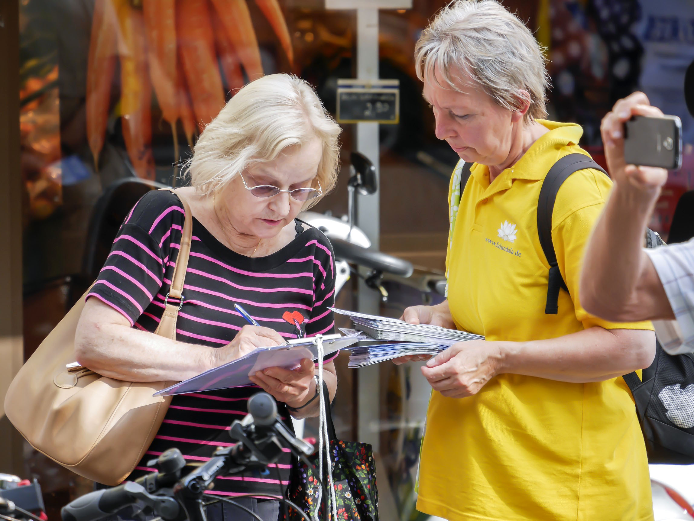 这四百多法轮功大部分来自德国,还有的来自瑞典、芬兰、法国、荷兰等欧洲国家。聚集在柏林的目的,一个是为了纪念法轮功反迫害十七年,一九九九年七月二十日,中共前党魁江泽民发动了对法轮功的迫害;另外一个是让更多的人知道中国活摘器官调查的最新进展。