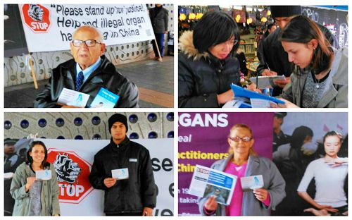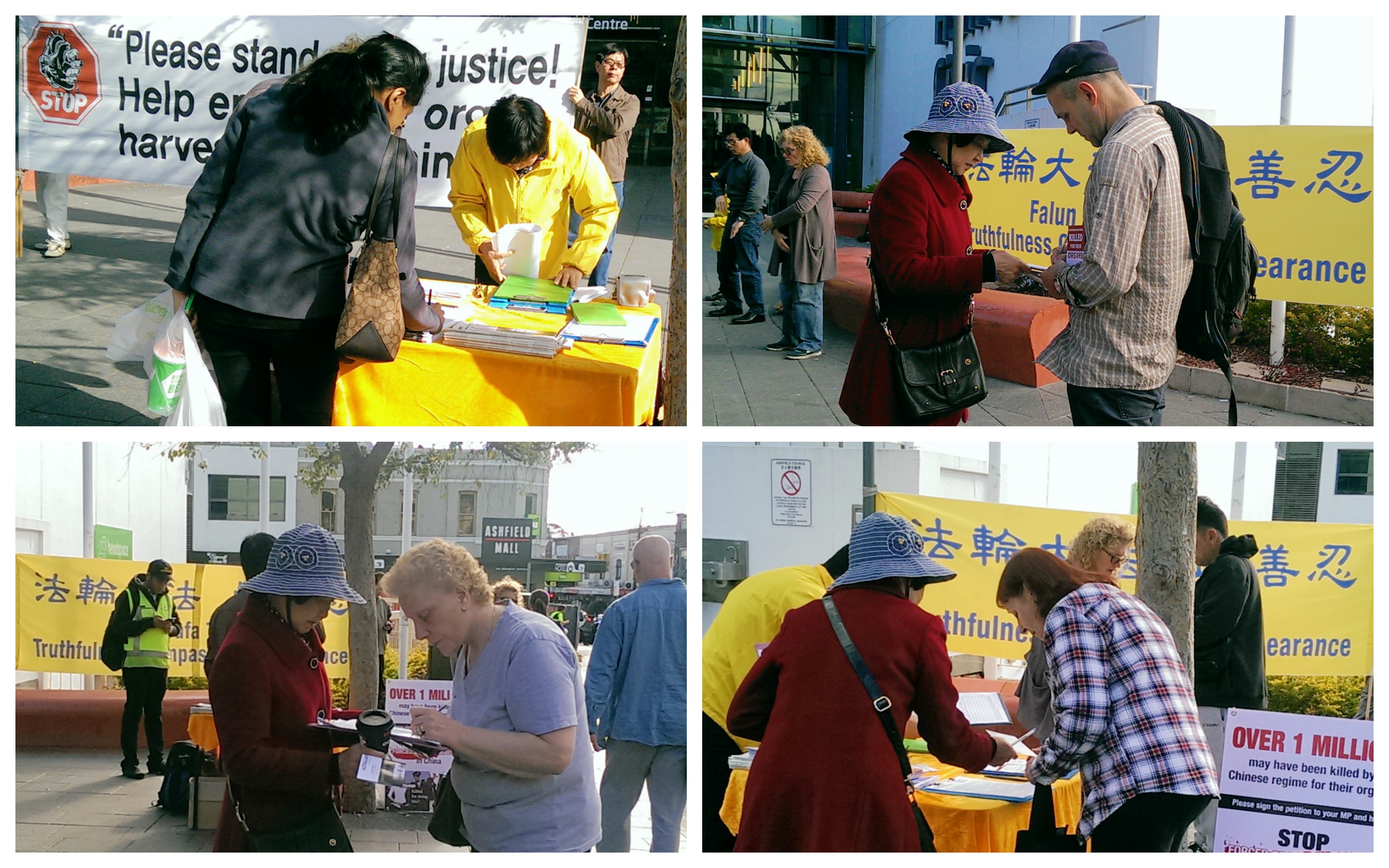 过往的行人阅读关于活摘器官最新调查报告的传单、展板或通过与学员交谈了解到:中国的医院过去十多年中活摘器官达百万级别,难以计数的良心犯因此遭受虐杀。尤其当人们得知这是由中共政府和军队有组织的国家犯罪时,无不感到震惊,纷纷签名给自己所在选区的联邦议员邮寄真相明信片,很多人表示有兴趣前往观看即将在悉尼放映的《难以置信》纪录片,目前在纽省议会大厦的放映的票几近售罄。有的人索取更多真相明信片以方便自己的家人和朋友也可以加入声援行列,有的表示愿意来参加将在九月份举行的反迫害集会。