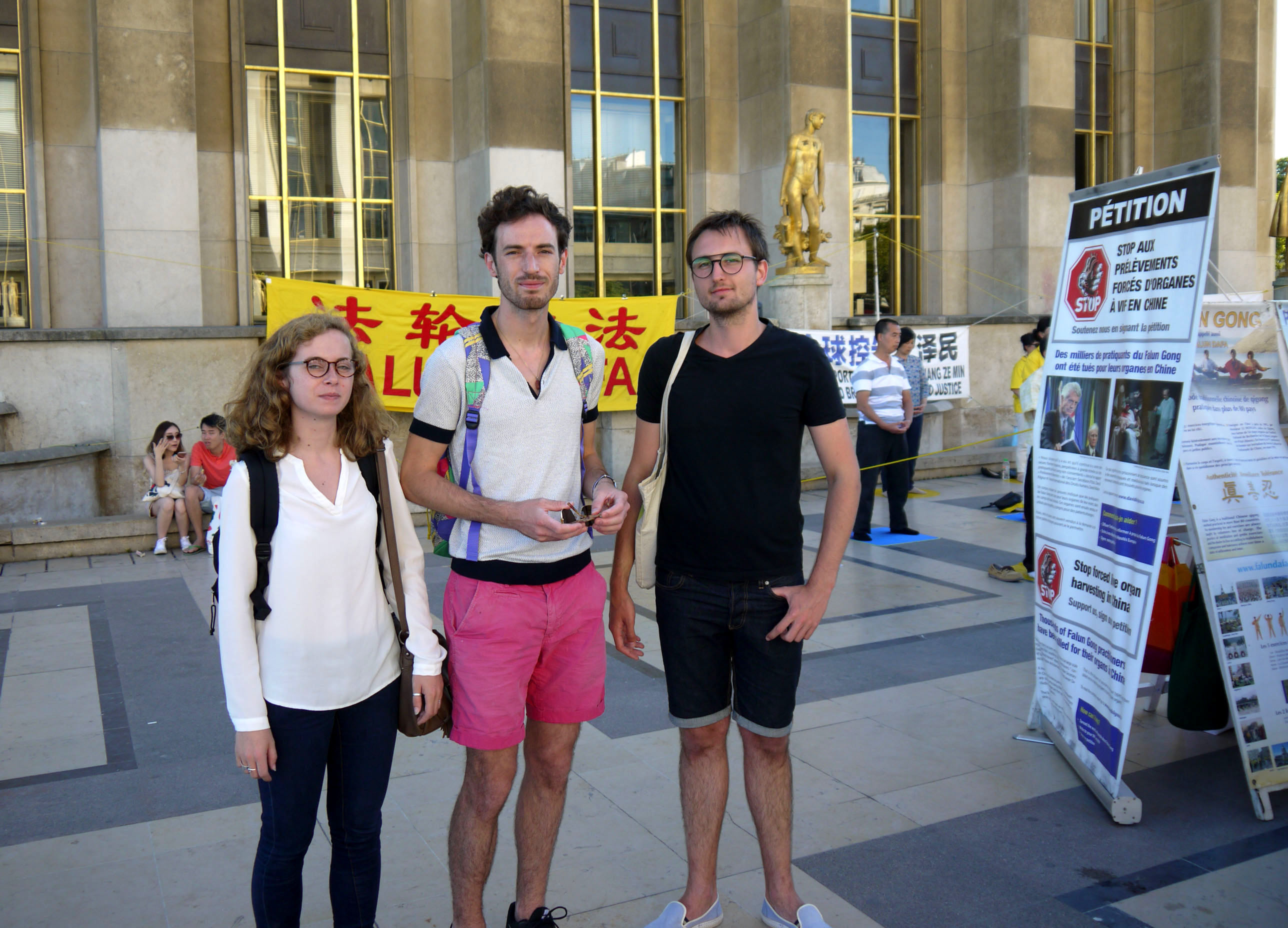 安托万·艾斑(Antoine Epin)是医学院毕业生,在医院内工作。他和朋友一起来到人权广场。了解活摘器官的事实后,他说:“我反对强摘器官,这太恐怖了,那些受害者应该受到尊重。再一点,法轮功修炼者他们有健康的身体和良好的器官,被摘取器官后杀害,这太惊骇了。政府应该实施一个良好的健康政策,而不是杀人贩卖器官。”他说:“我签字。我反对这种形式的谋杀。”他表示想要更多了解法轮功和被迫害的真相事实。