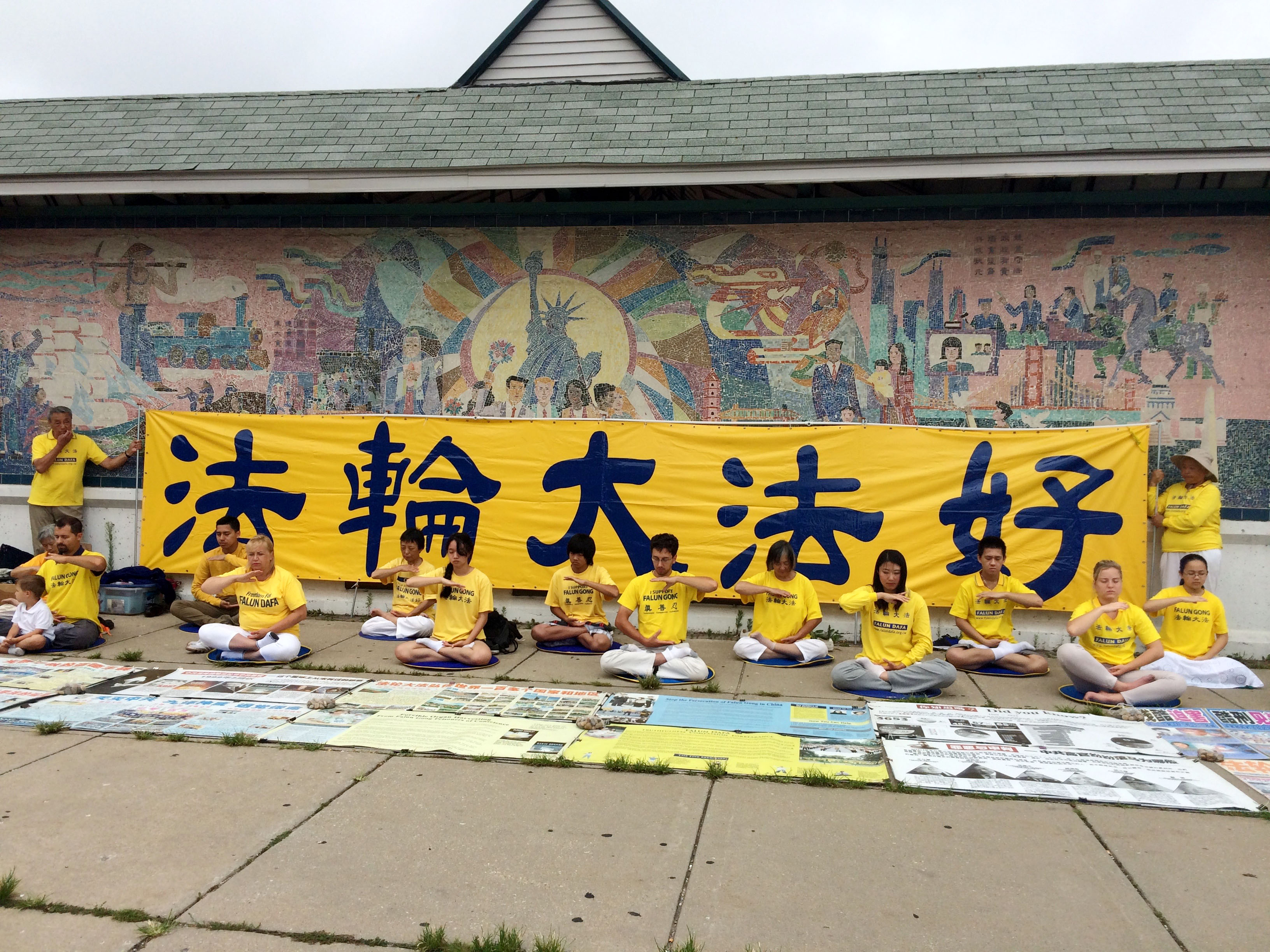 她主动参加了七月底举办的美中法轮功学员芝加哥中国城洪法炼功活动。当天,在炼法轮桩法时,她感觉全身都被强烈的暖流包围着。