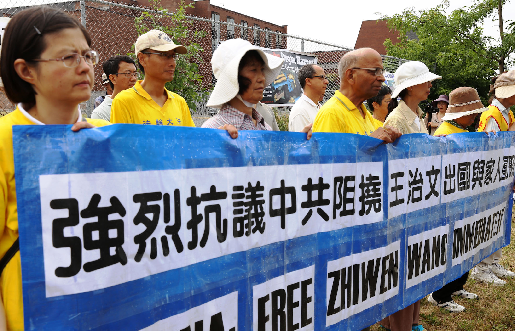 许多加拿大人在过往的车辆中向法轮功学员鸣笛,表示支持。李迅代表现场的法轮功学员呼吁加拿大政府和人权机构伸出援助之手,帮助王治文摆脱迫害,尽快与美国亲人团聚。并帮助将迫害元凶江泽民、曾庆红等绳之以法,结束迫害。
