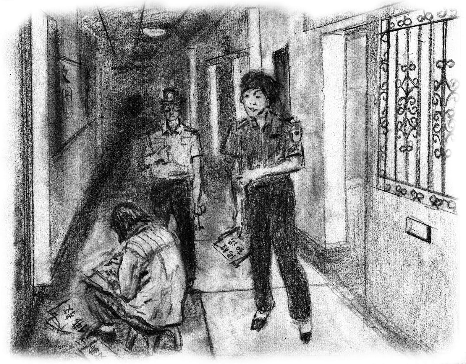 三、二零零四年三月,我被非法判刑九年,被劫持到北京女子监狱十监区。从进去那天开始,狱方就不让我睡床,只能睡在一张破桌子上。我决定给监狱长和检察院写信,但是他们拦住我不让我投信。