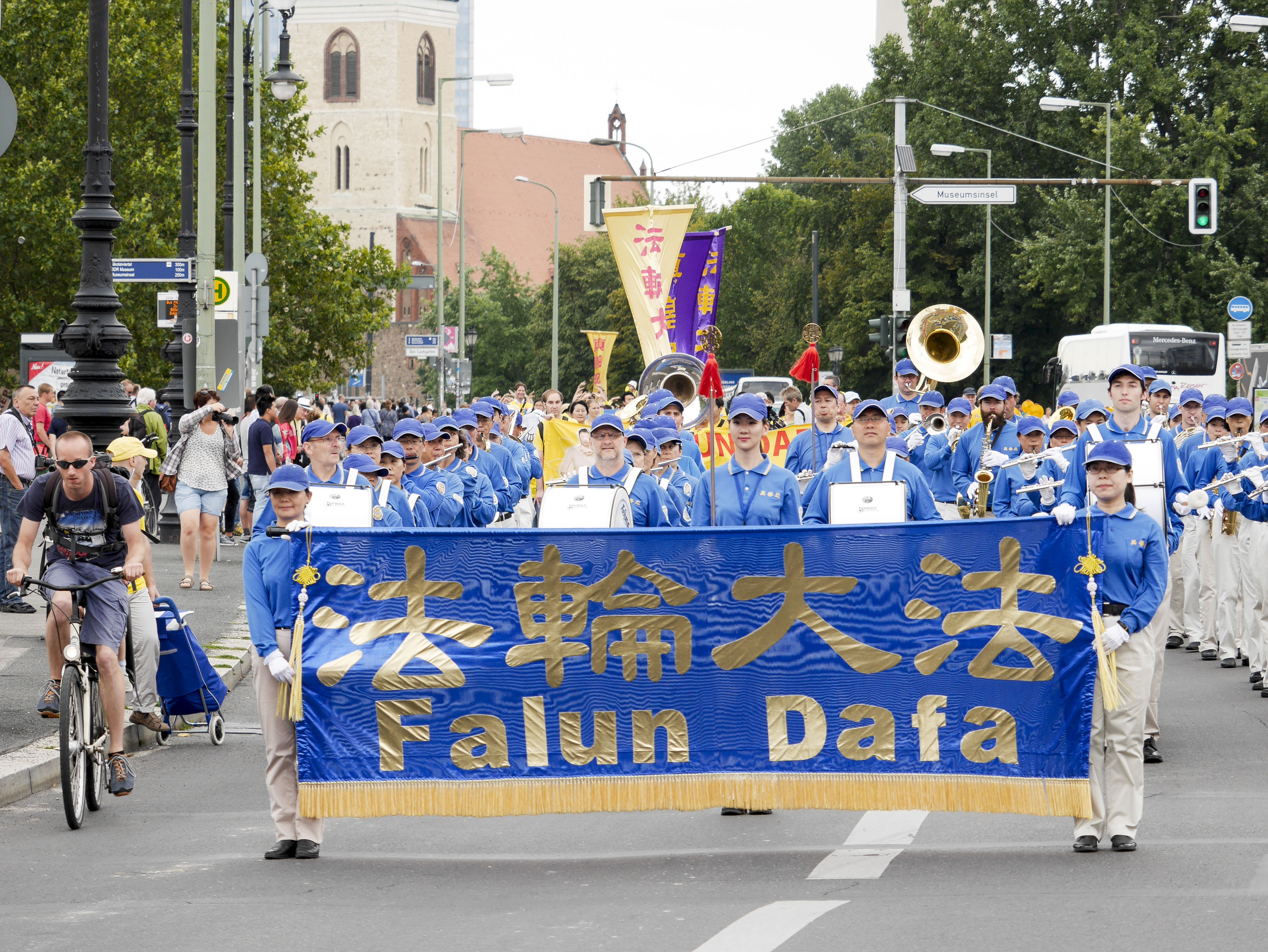 ![]() 来自欧洲各国的部分法轮功学员于二零一六年七月三十日在柏林市中心举办大游行,天国乐团打头阵。 |