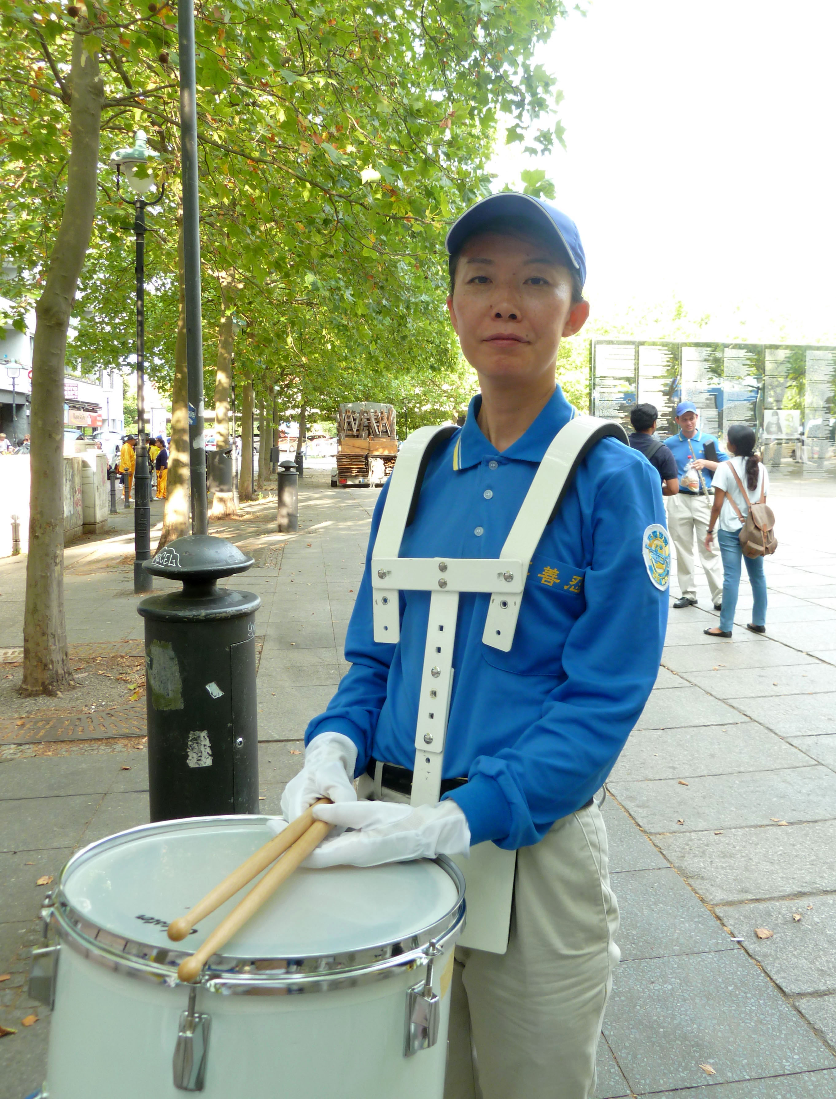 对于初勍来说,这次柏林的游行就在“家门口”,因为她就住在柏林。来自山东的初勍在天国乐团里打小鼓,所以自加入欧洲的天国乐团后,她也是自费跟着欧洲天国乐团“南征北战”,因为她希望对法轮功的迫害能早日结束。