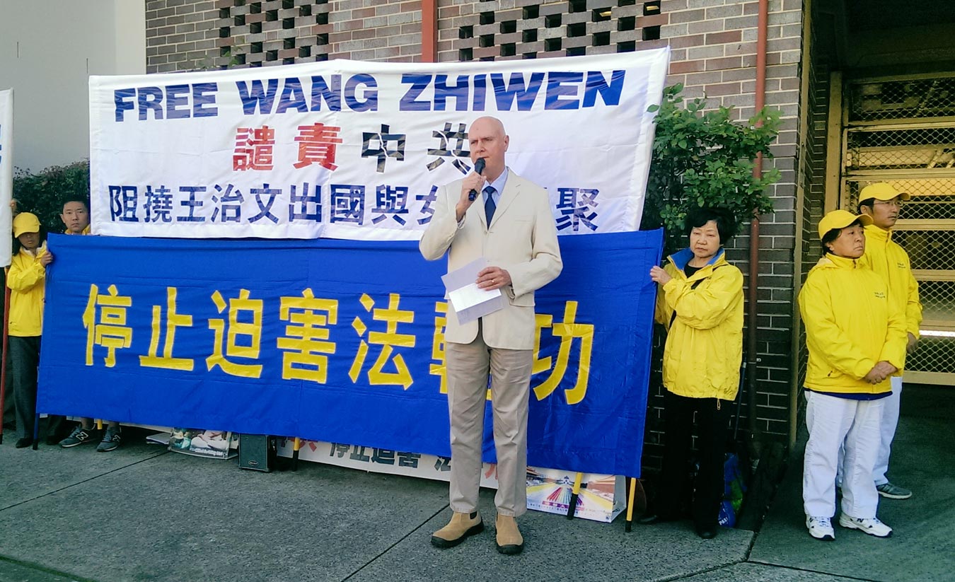 澳大利亚法轮大法学会会长赵露西博士要求中国当局立即给王治文重发护照,呼吁各国政府和国际人权机构伸出援手,帮助王治文早日摆脱迫害,前往美国与亲人团聚。并正告中共各级官员及领馆工作人员,停止追随江泽民迫害法轮功的政策,以免给江泽民、曾庆红等做陪葬。