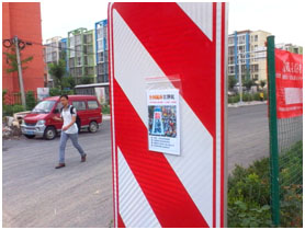 “诉江”是当前讲真相救人的重点内容之一。明慧网为此推出不同版本的资料。其中,《全国起诉江泽民》封面醒目,在作为真相资料发放的同时,也可起到真相贴的作用。方法是:将该期刊用8号自封袋装好,在封口的上沿贴上一段两面胶,选择行人经过较多的地方,如地铁入口、咽喉要道等,将期刊贴在电杆,或者是墙上。这种方法可让更多人了解“诉江”信息。一处可同时贴1—3个,用自封袋封装,显得庄重,又能防雨。
