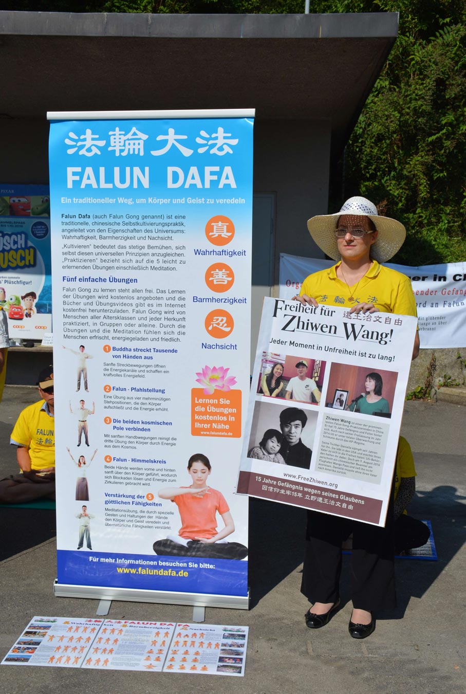 来自瑞典的丹(Dan)目前和妻女生活在苏黎世,他修炼法轮功已经十七年了。他注意到:“很多人还不了解法轮功是什么,不知道迫害,当他们看见我们,他们意识到迫害有多严重,想了解更多,很多人想帮助制止迫害。”他希望:“让人知道王治文的经历,让领馆的人看到法轮功在其它国家的传播,甚至还有西方人修炼。看到我们的活动,中国人能了解到中共媒体的报道是不对的。”