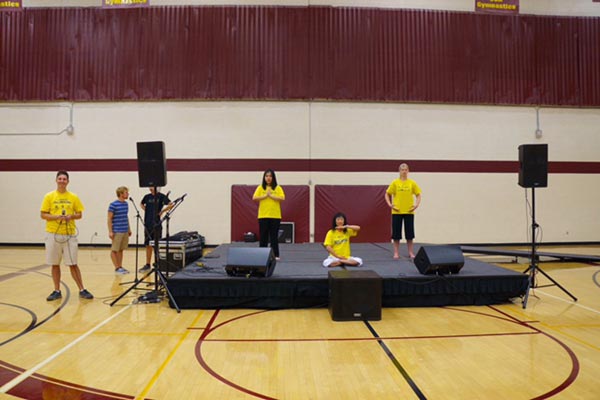 当学员们在舞台上展示功法时,很多西人学生和中国学生在台下观看拍照,一些刚来美国的中国留学生看到后也表示震撼,愿意接收资料。第二次户外舞台炼功展示时,工作人员用扩音器把柔和的大法介绍音频露天播放,校内离得很远都听得很清晰。一位偶然经过的学生当时就主动要传单表示想了解更多。