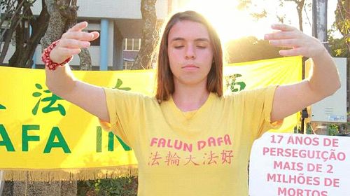 巴西圣保罗的法轮功学员们经常在最繁华的商业大街保利斯达(Paulista)大街上弘法。圣保罗艺术博物馆(MASP)是学员们展示功法、发放传单的固定点,很多过路人驻足观看。最近又开辟了华人商业区25街的活动,法轮功学员打着横幅,举着展板,呼吁中共停止迫害法轮功,所到之处发放了大量真相资料,帮助那里的华人认识法轮功、清除中共洗脑的思维。