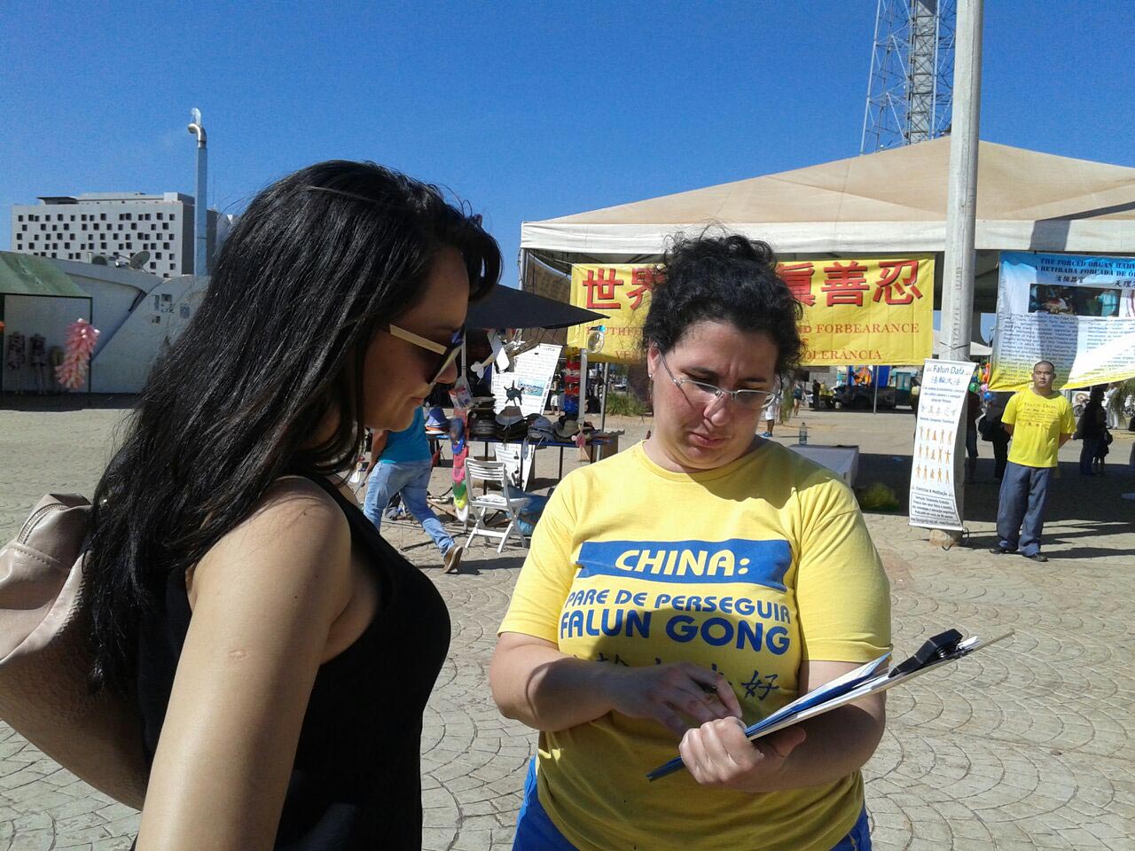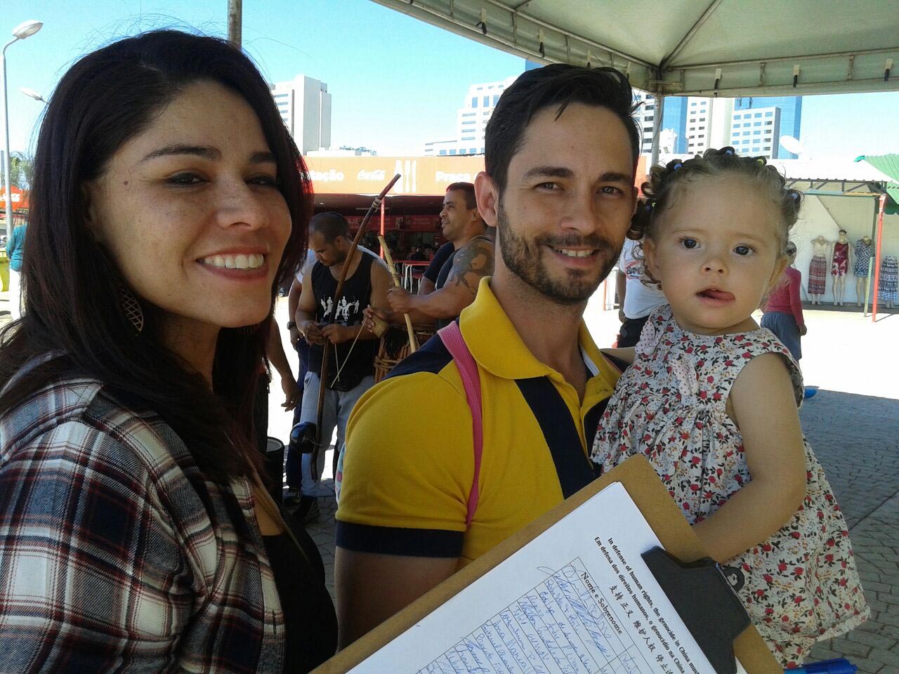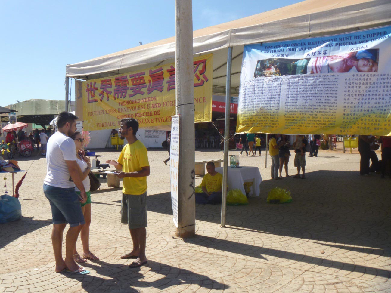 巴西巴西利亚的学员还新开设了一处假日市民首选的游玩休闲地的讲真相点。一对年轻夫妇抱着两岁的女儿走过真相点,小女孩目不转睛的看着学员,表情非常渴求。学员上前讲着真相,夫妇俩不断点头认可,当听到中共杀害有信仰者摘取器官获取暴利时,非常震惊,立即在征签表上签字。丈夫说:“真善忍每个人都需要,决不可以迫害好人”。全家人签名后都开心的笑了。