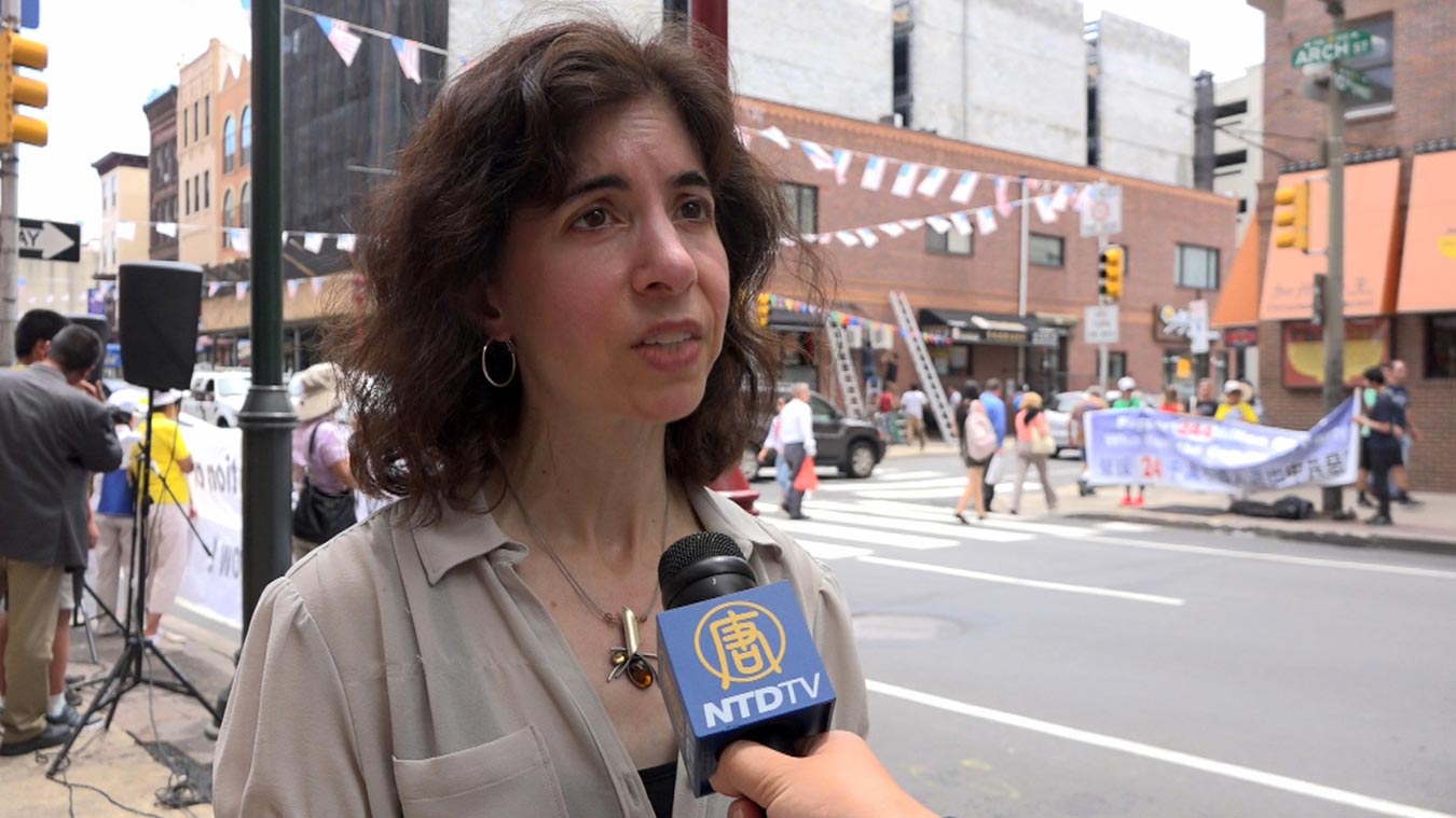 ![]() 图6:医生反强制活摘器官组织(DAFOH)费城分会代表Jessica Russo医生接受采访。 |