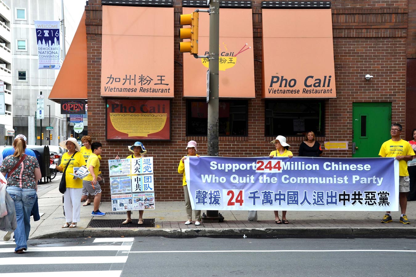 美国民主党大会过后,古老的费城又恢复了往日的繁忙与喧嚣。在七月份的最后一天,部份大费城地区法轮功学员一天之内先后在自由钟公园和中国城两处举办活动,向游客与路人介绍法轮大法这一有益身心健康的功法,同时呼吁制止在中国大陆对法轮功长达十七年的迫害。