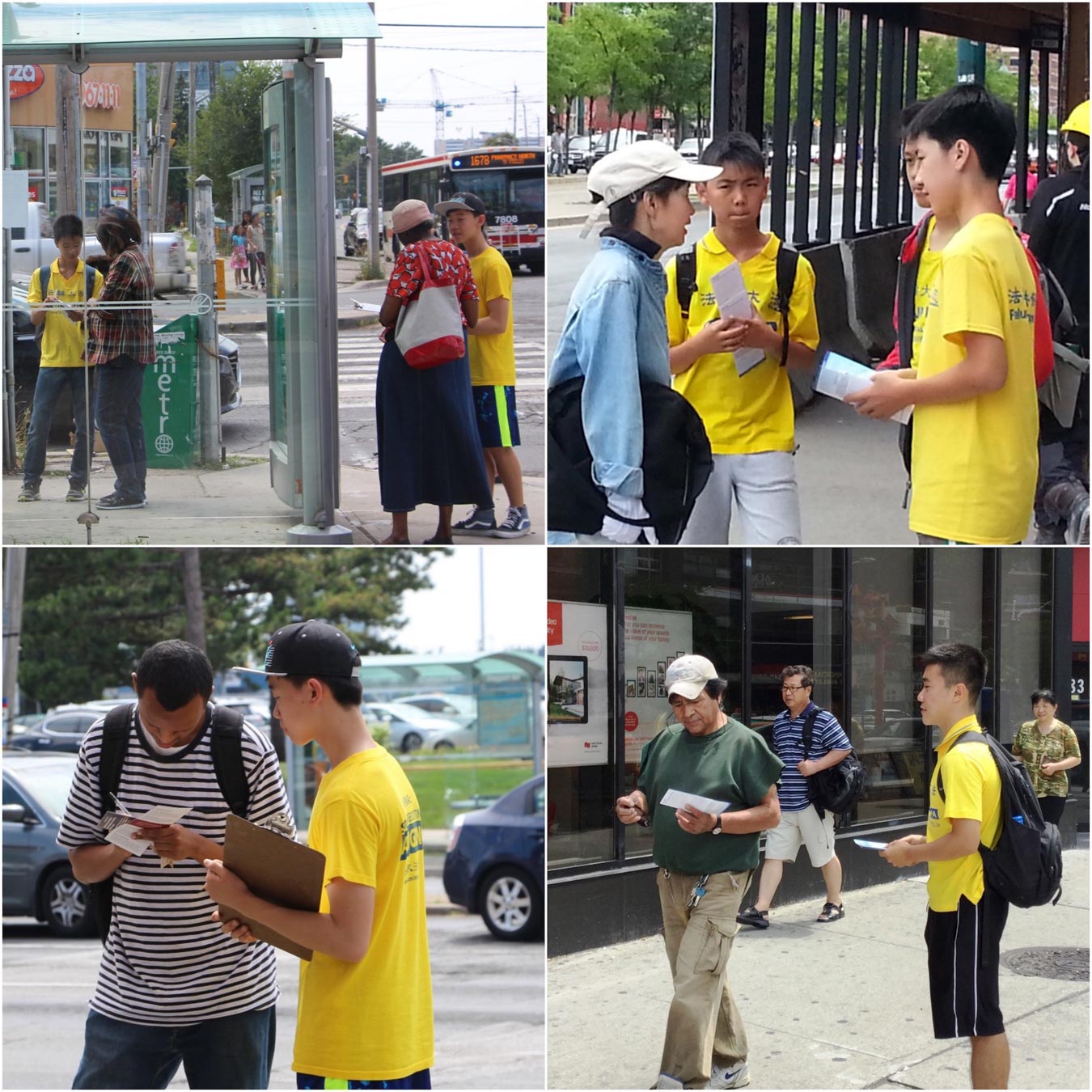 学生们还一起回顾了真相影片《永恒的电波》和《通往天安门的旅程》,并和《通往天安门旅程》中的西人法轮功学员泽农进行了对话和修炼的交流。他们还一起到Queens Park和唐人街弘法和到各路口征签,这些青少年在活动中都特别的认真。
