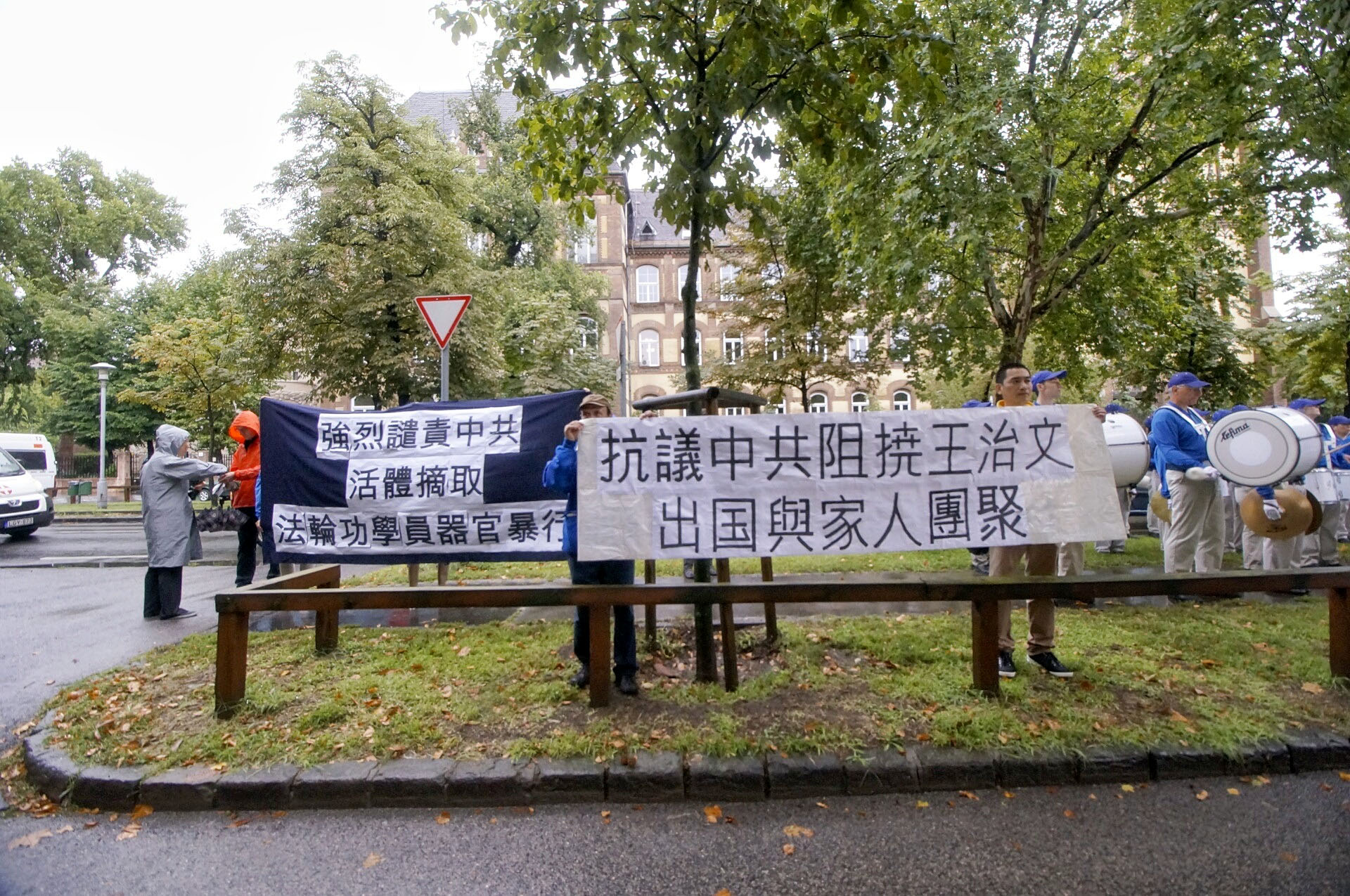 ![]() 匈牙利法轮功学员在中使馆前集会,声援王治文。 |